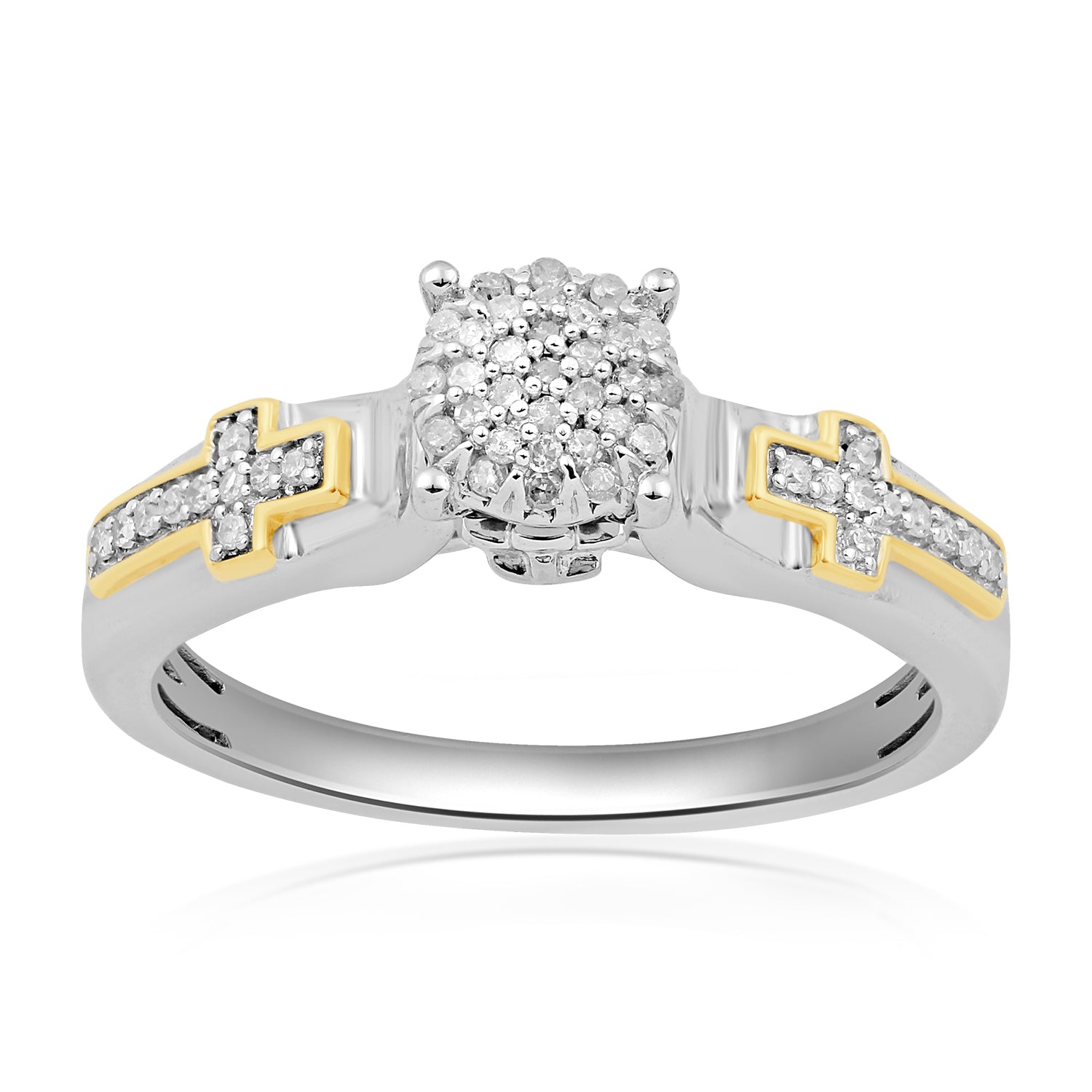 • 14K Yellow Gold Over Sterling Silver With 1/5 Cttw Natural White Diamonds Bridal Set