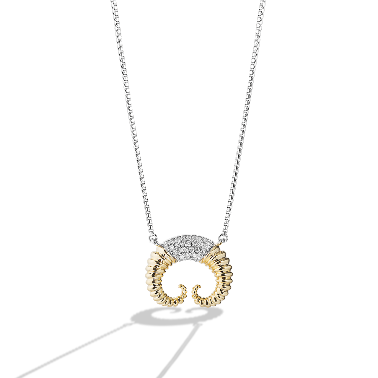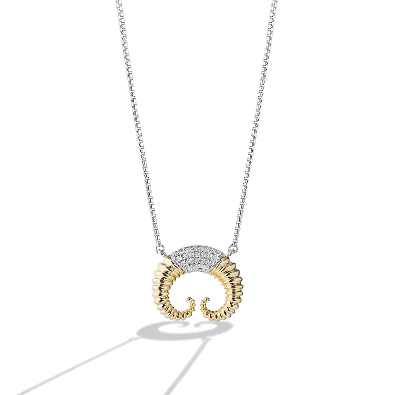 Inspired by the large, furry mammals of Tatooine™, this sterling silver and 10 karat yellow gold diamond necklace takes the shape of a Bantha™ horn.