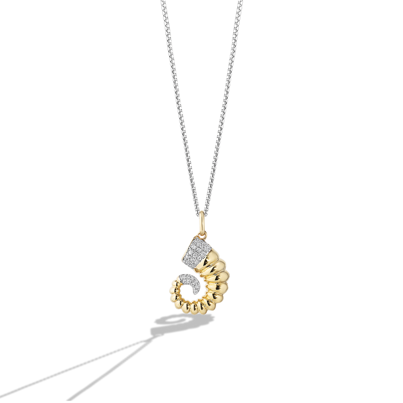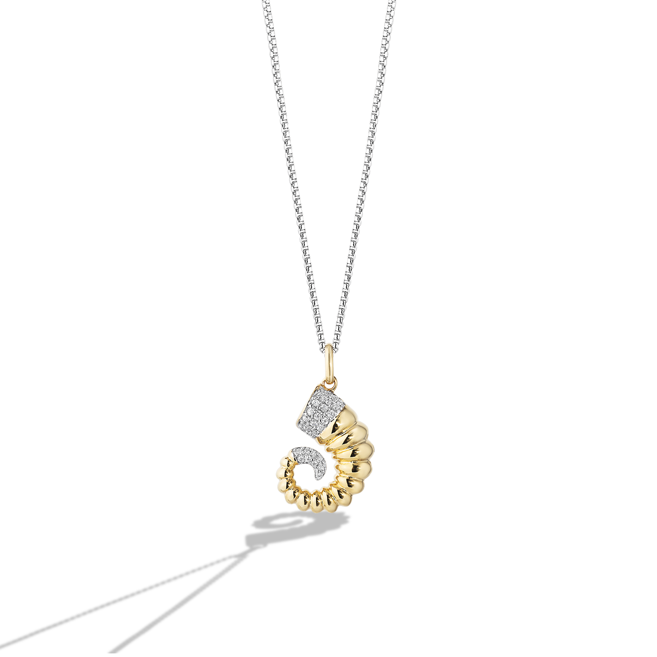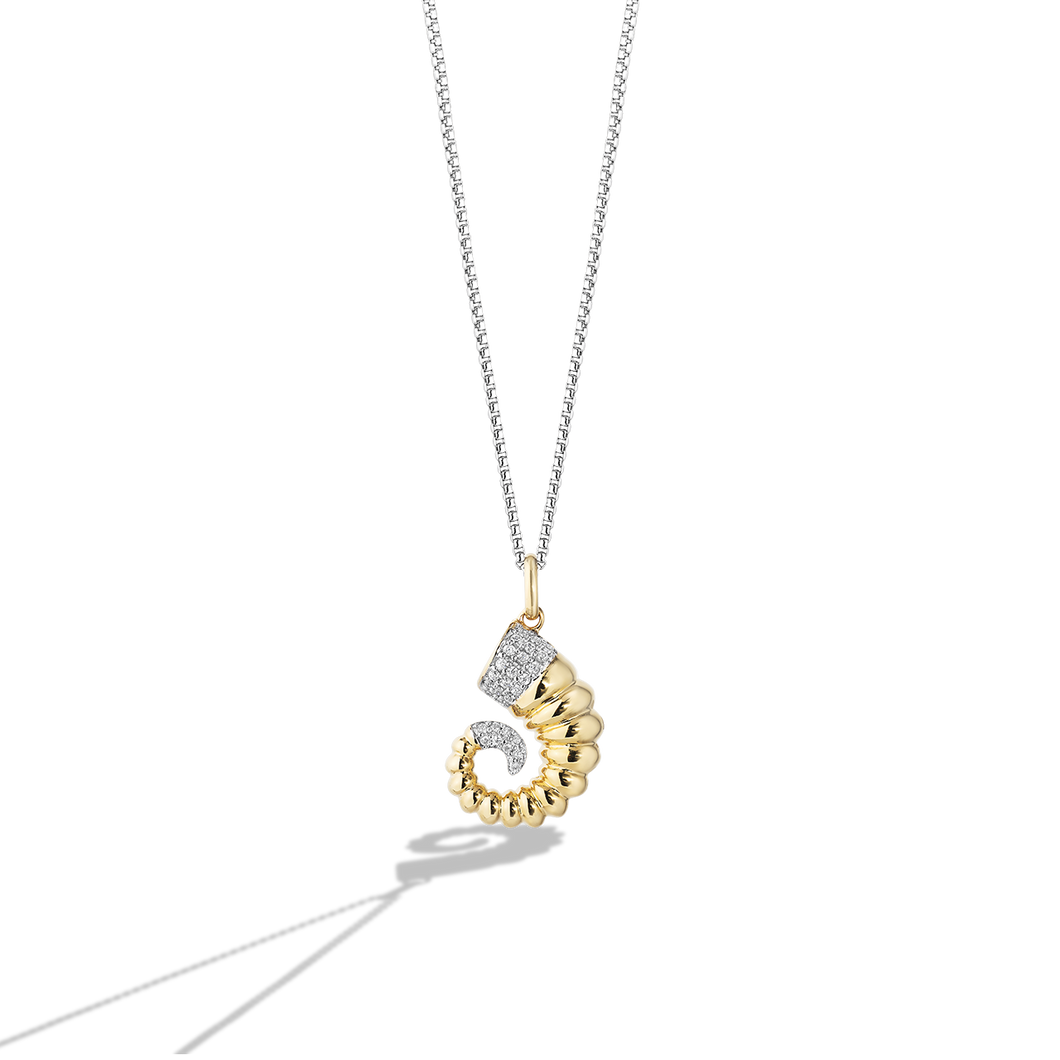 Bantha™ women's pendant made in 10K yellow gold and sterling silver with white diamonds.