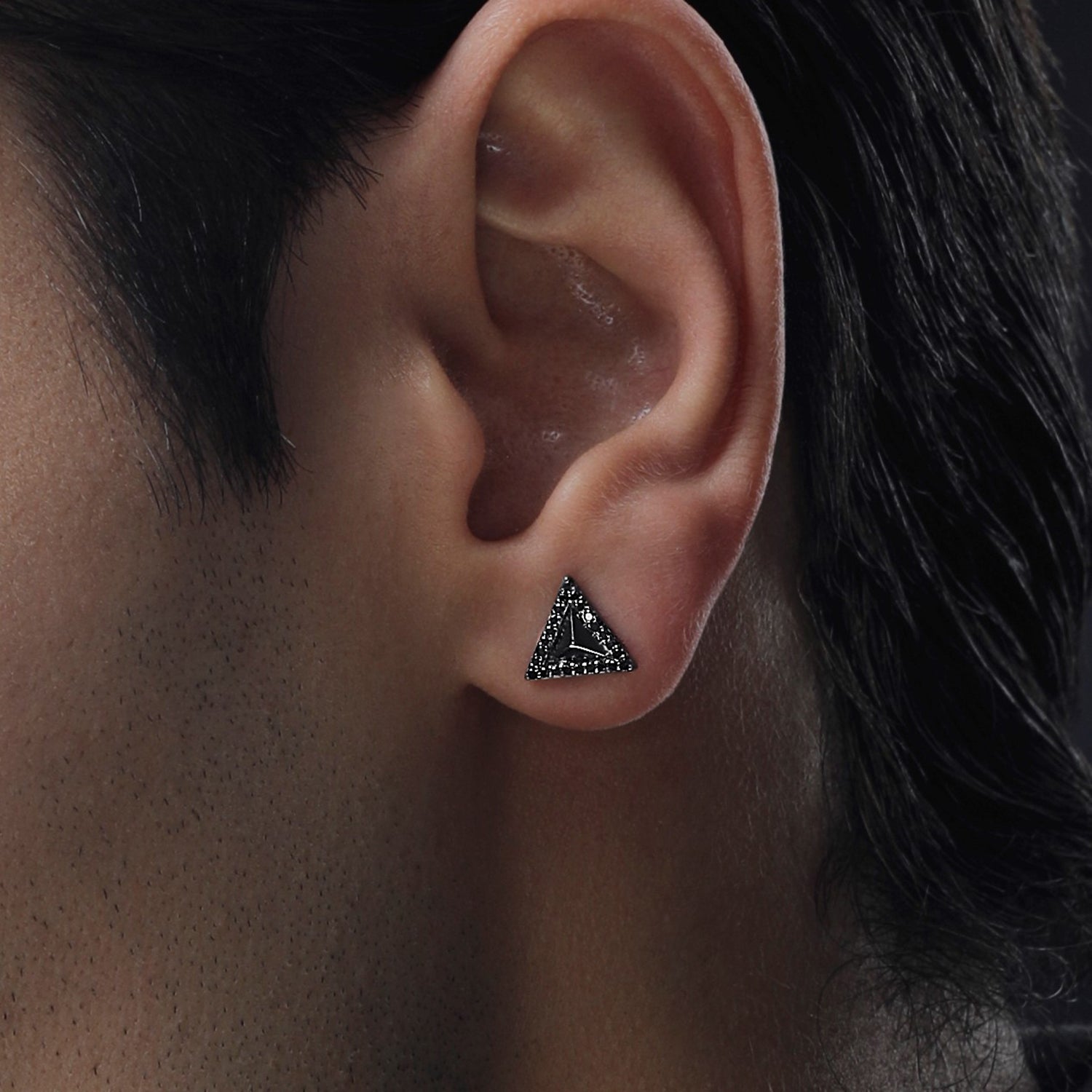 Dark Armor men's/women's pyramid stud earrings, made in silver with black rhodium and black diamonds.