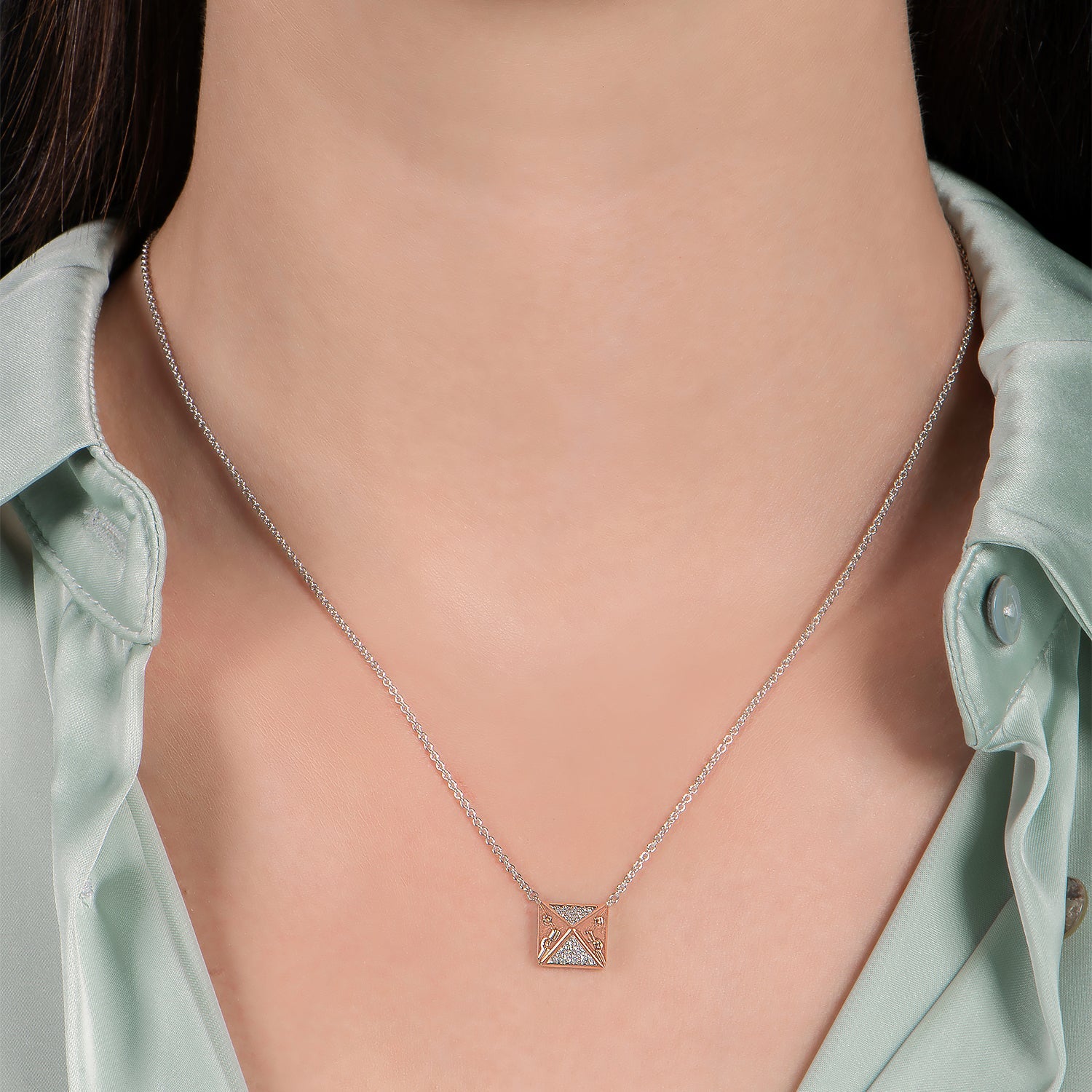 Enchanted Disney Fine Jewelry 10K Rose Gold and Sterling Silver 1/15 CTTW Diamond Aurora Pyramid Pendant Necklace