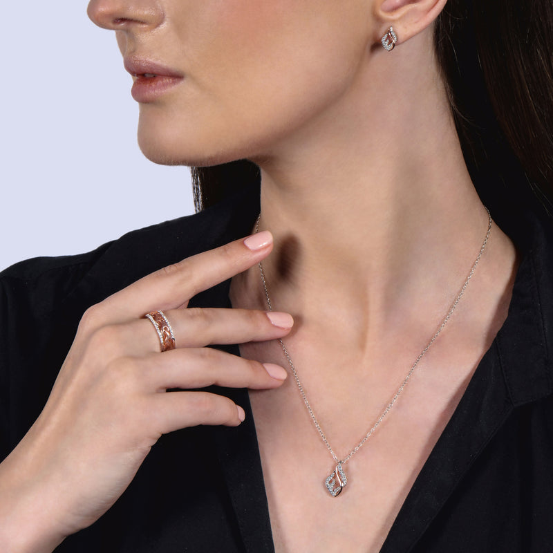 Enchanted Disney Fine Jewelry 10K Rose Gold and Sterling Silver with 1/5 CTTW Diamond Maleficent Flames Ring