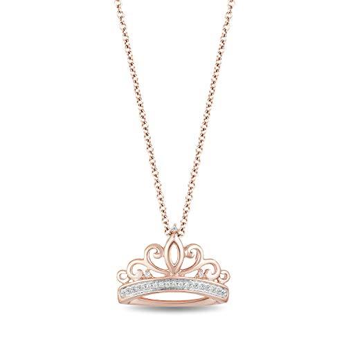 For the special person who reigns over your heart, here is a crown to let her know that she rules. A beautiful creation from the Enchanted Disney Fine Jewelry Collection, this Majestic Princess Fashion necklace features a 10k rose gold crown suspended from a cable chain. The tiara's band and its filigree tips are dotted with diamonds for some sweet sparkle. This gift-ready fine jewelry is presented in an elegant gift box.