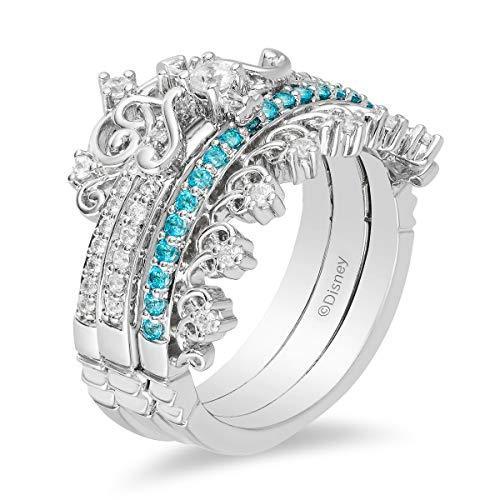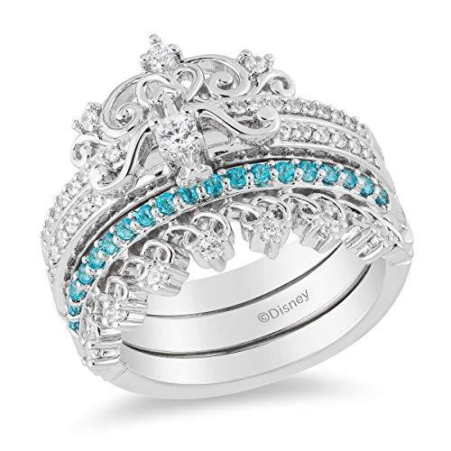 Enchanted Disney Fine Jewelry 10K White Gold with 1/5Cttw Diamond with Paribha Topaz Merida Trio Set Ring