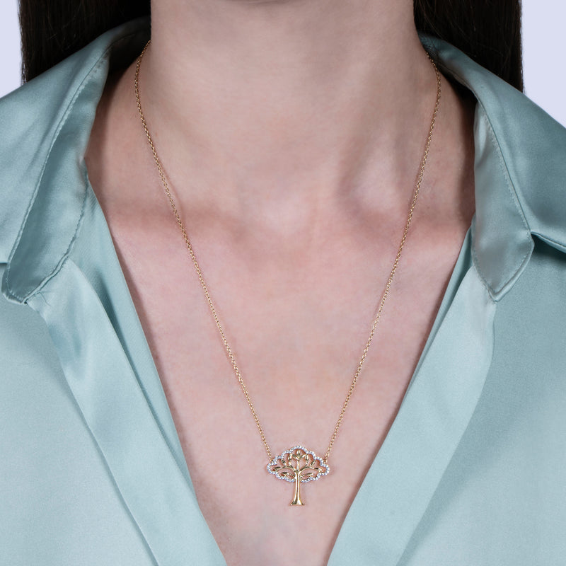 • Load image into Gallery viewer, Enchanted Disney Fine Jewelry 10K Yellow Gold with 1/8Cttw Pocahontas Tree Necklace