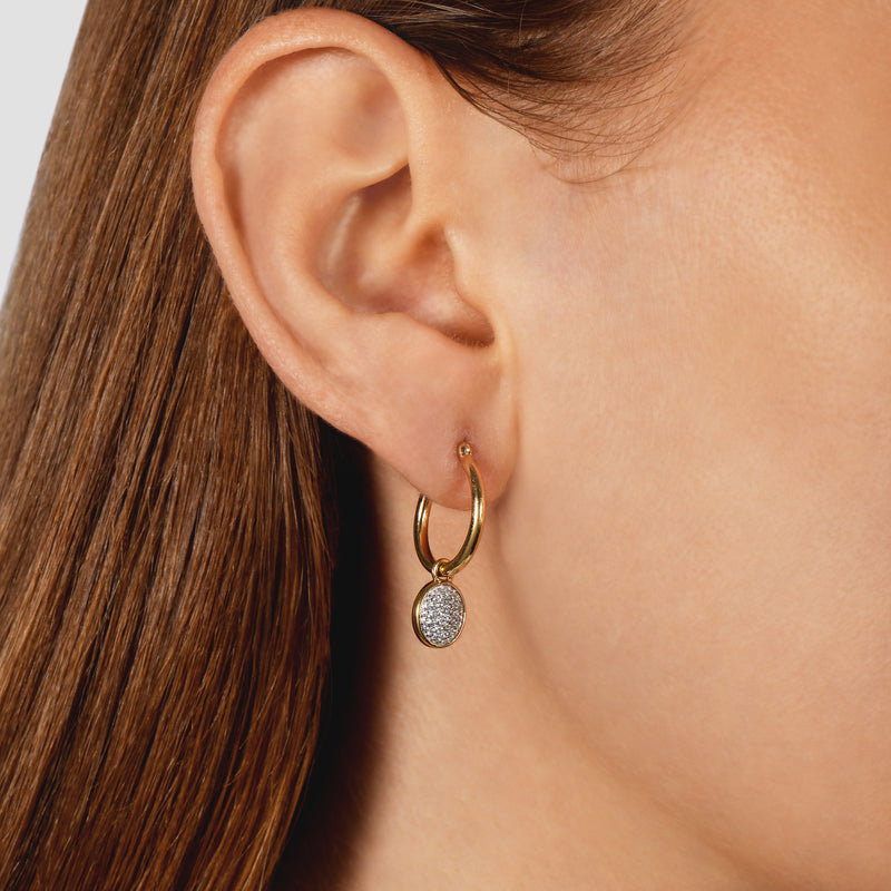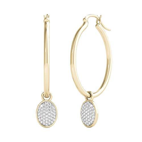Looking for an unusual Valentine's Day gift? Here is a pair of diamond hoop earrings inspired by Disney's Princess Jasmine. For your very own princess who charmed you with her assertive, independent, and strong-willed personality, here's a romantic present that will sweep her off her feet. This pair of ear hoops is crafted in 10K yellow gold and features a tiny oval plate covered with 1/5 cttw round brilliant diamonds.