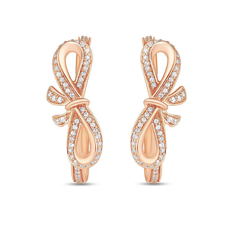 The luxurious look and iconic detail make this pair of earrings fit for a princess. A creation from the Enchanted Disney Fine Jewelry collection, here are 14k Rose Gold earrings sculpted like a tied bow and decorated with 1/2 carat total weight of diamonds. It's reminiscent of Snow White and her dainty look and gentle beauty. Wear this ring to exude elegant femininity and look and feel like a princess any day.