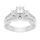 This majestic diamond ring features a duo of elegance. One ring has a three-stone setting while the other has its diamonds in pave setting. When stacked together, the rings form a glamorous merging of traditional and modern ring designs. For your bride-to-be who is a Disney lover and a Cinderella fan, this is the perfect bridal set to get her planning for your happy-ever-after wedding.