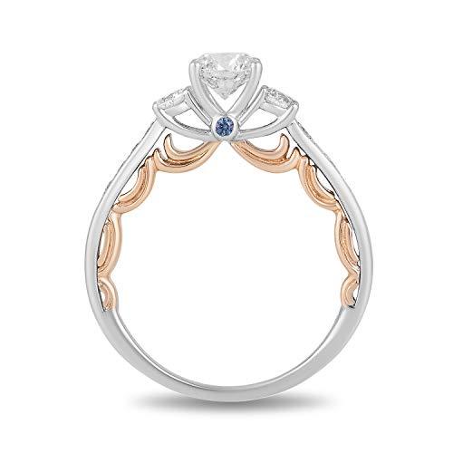 Enchanted Disney Fine Jewelry 14K White Gold and Rose Gold 1 CTTW Diamond with London Blue Topaz Cinderella Engagement Ring