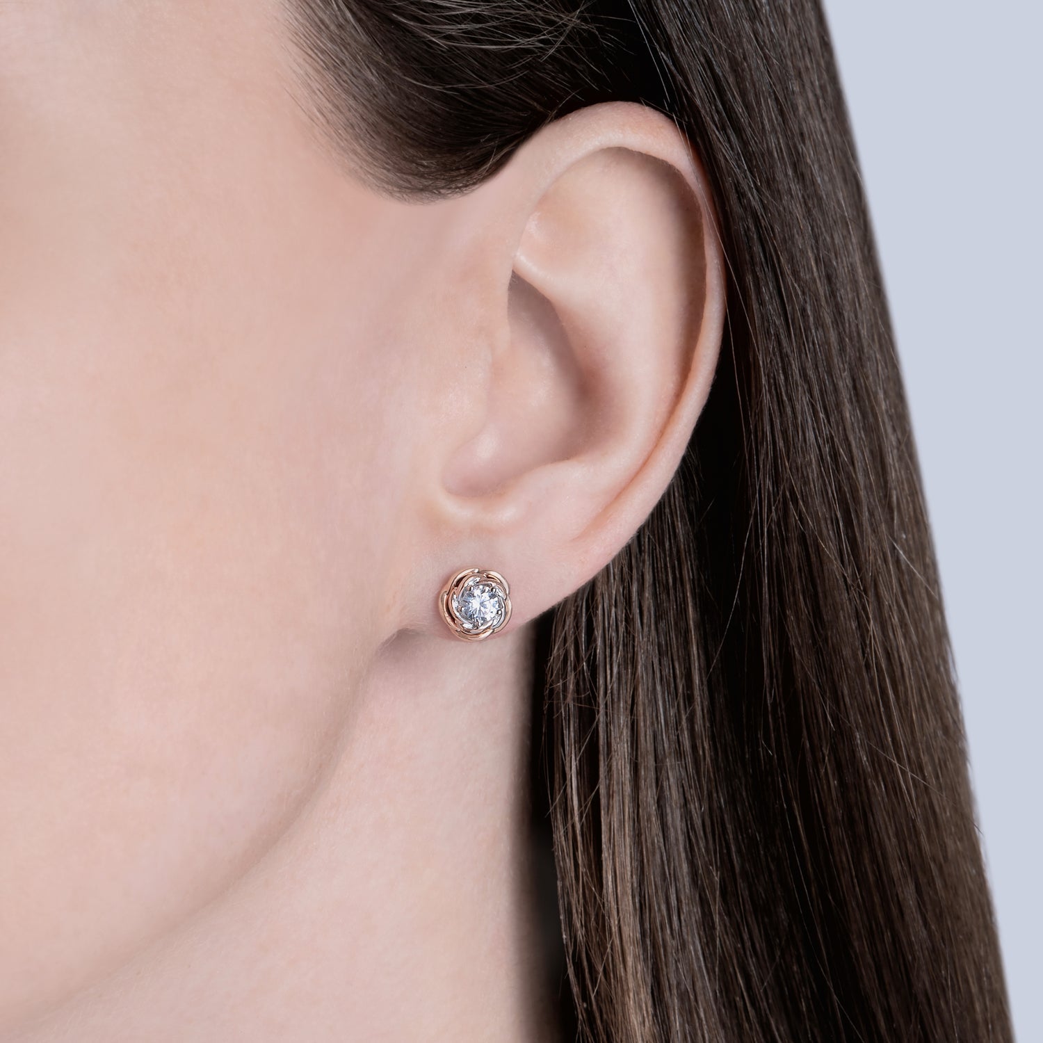 Enchanted Disney Fine Jewelry 14K White Gold and Rose Gold with 1/2 CTTW Diamond Belle Solitaire Stud Earrings