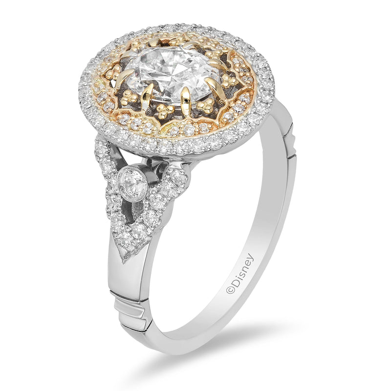 Enchanted Disney Fine Jewelry 14K White Gold and Yellow Gold 1 1/2 CTTW Jasmine Engagement Ring