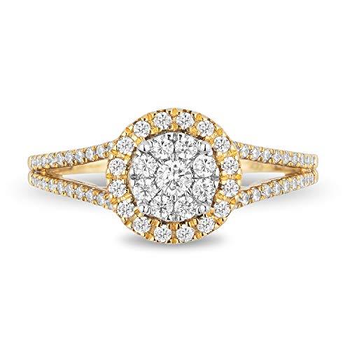 A ring that will dazzle with glamour, this Enchanted Disney Fine Jewelry 14k Yellow Gold 5/8 cttw Majestic Princess Composite Engagement Ring showcases a standout effect that can be noticed from afar. The head-turning brilliance and eye-catching sparkle can certainly blow your significant other away. If your lady's the extrovert type who won't shy away from attention, then this is the perfect ring for her.