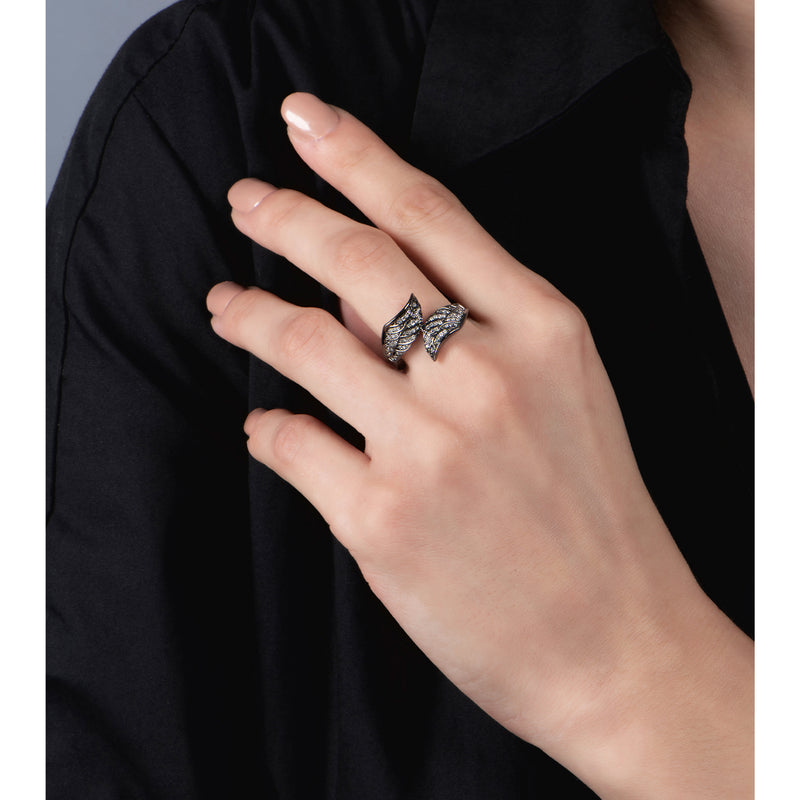 Enchanted Disney Fine Jewelry Black Rhodium over Sterling Silver with 1/4 CTTW Diamond Maleficent Wing Shape Ring