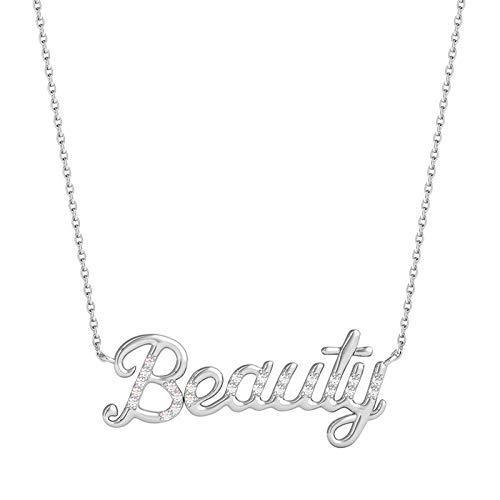 Inspired by Belle, here is a charming Enchanted Disney necklace with the word "beauty" sculpted in a diamond-studded cursive font. Crafted in sterling silver and adorned with 1/10 CTTW brilliant diamonds, this fabulous necklace makes a statement without being over the top. Make this a part of your jewelry collection and let it add instant sophistication, sparkle and shine to any and all of your outfits.