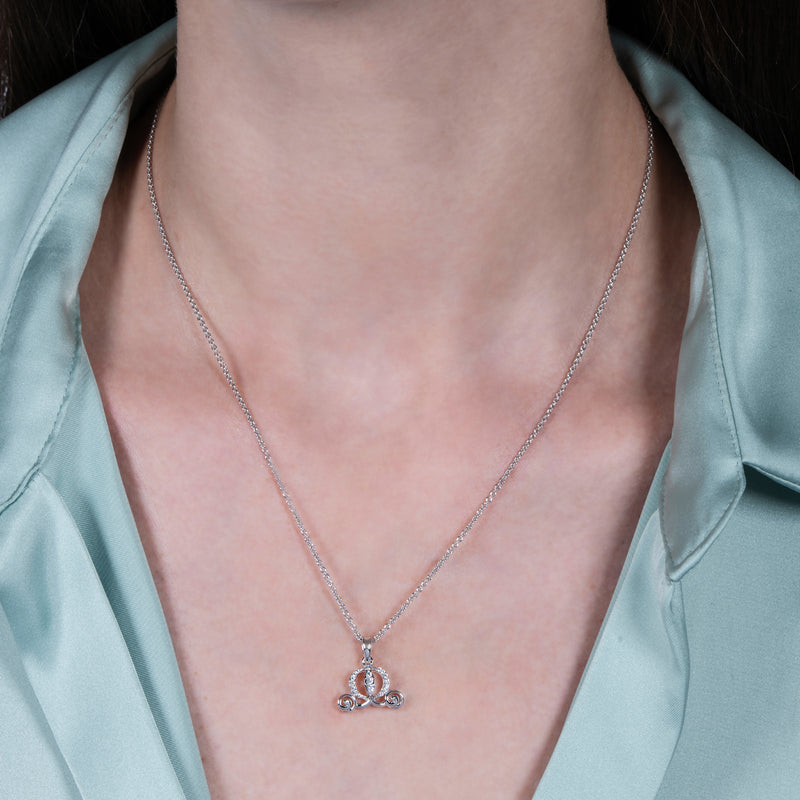 Have a fashion moment as you wear this Enchanted Disney Fine Jewelry Sterling Silver 1/10 CTTW Diamond Cinderella Carriage Pendant. It's a statement necklace that's elegant and dainty enough for daily wear. With its exquisite craftsmanship, it can go well with any outfit - be it casual or formal wear. Wear this necklace and give any of your looks a nice touch of whimsy and glitter.