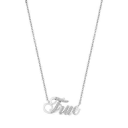 Words are powerful and what better way to benefit from words than empowering someone else through it. Give this Cinderella Necklace to someone you care about and let its statement that reads "true" provide inspiration and encouragement. Let this sterling silver script that's embellished with 1/6 cttw diamonds remind someone dear of the importance of being true to one's self and of you being a true friend who genuinely cares for her.