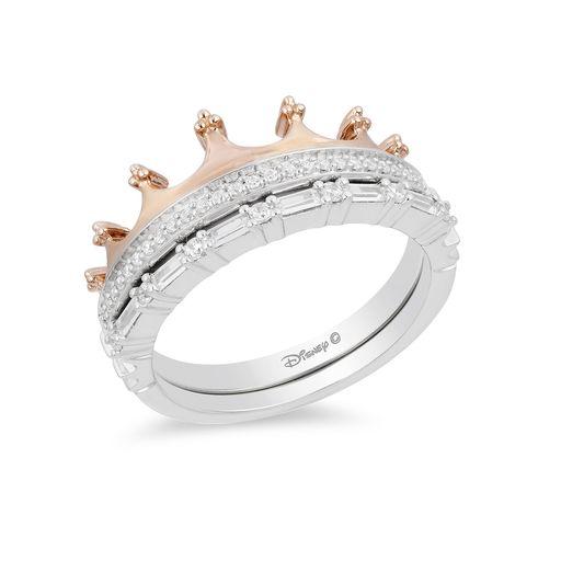 Enchanted Disney Fine Jewelry Sterling Silver and 10K Rose Gold 1/3CTTW Majestic Princess Crown Ring