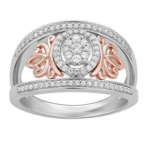 Enchanted Disney Fine Jewelry Sterling Silver and 10K Rose Gold with 1/4 cttw Majestic Princess Crown Ring