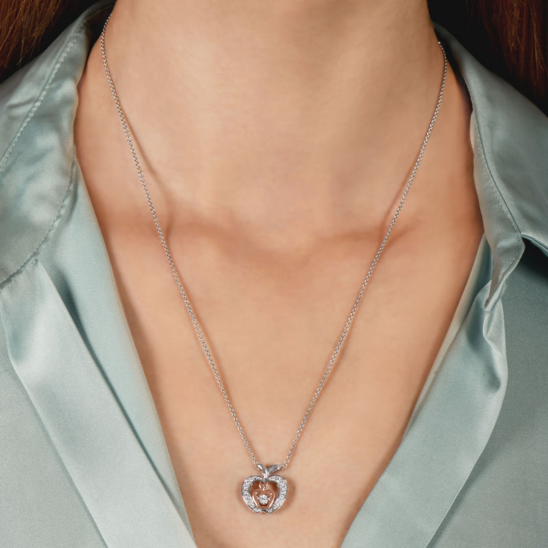 Enchanted Disney Fine Jewelry Sterling Silver and 10K Rose Gold with 1/5 cttw Snow White Apple Pendant