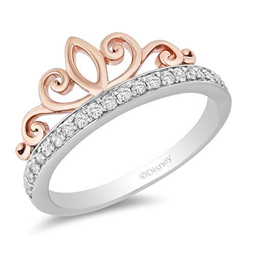 Enchanted Disney Fine Jewelry Sterling Silver and 10k Rose Gold 1/5cttw Majestic Princess Tiara Ring