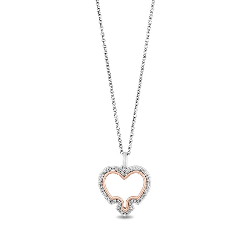 Enchanted Disney Fine Jewelry Sterling Silver and 10K Rose Gold With 1/6 CTTW Diamond Aurora Heart Pendant Necklace