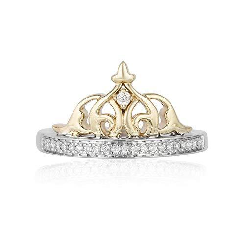 Enchanted Disney Fine Jewelry Sterling Silver and 10K Yellow Gold 1/10CTTW Jasmine Tiara Ring