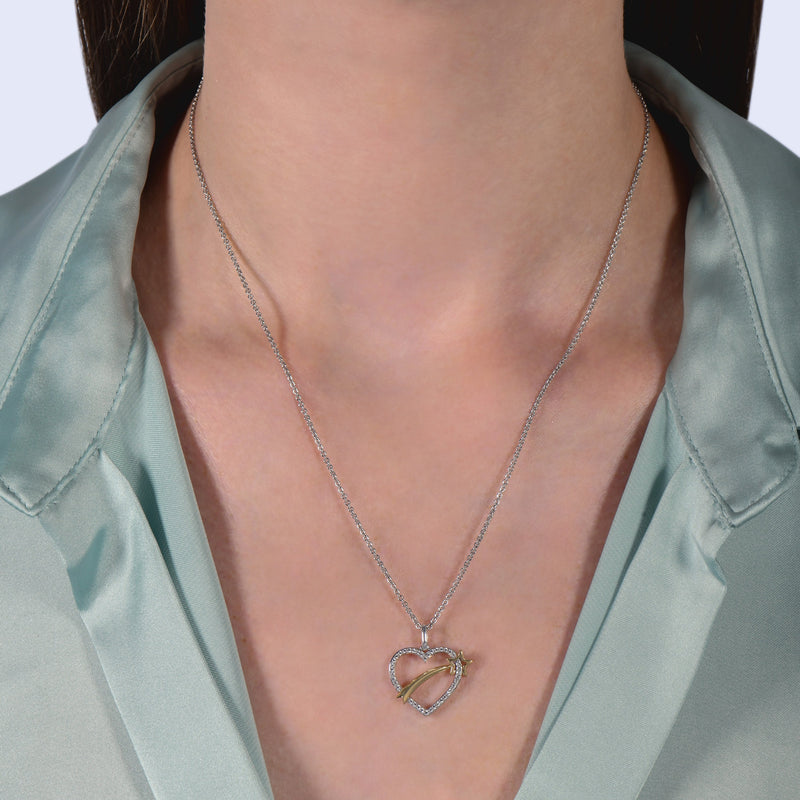 • Load image into Gallery viewer, Disney Tinker Bell Inspired Diamond Star Heart Necklace Pendant in Sterling Silver and 10K Yellow Gold 1/6 CTTW View 1