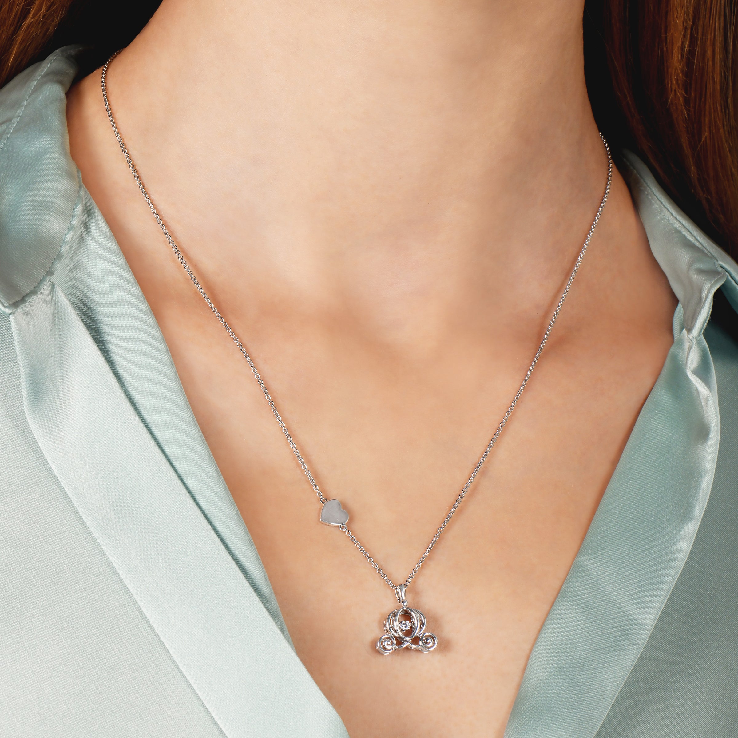 • Load image into Gallery viewer, Enchanted Disney Fine Jewelry Sterling Silver Diamond Accent Cinderella Carriage Necklace