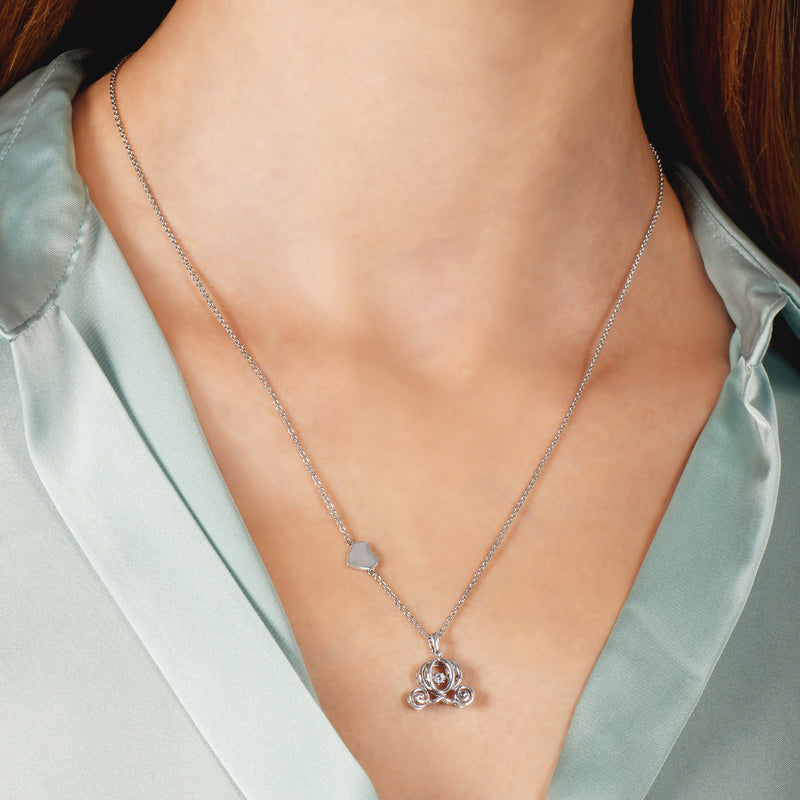 Enchanted Disney Fine Jewelry Sterling Silver Diamond Accent Cinderella Carriage Necklace