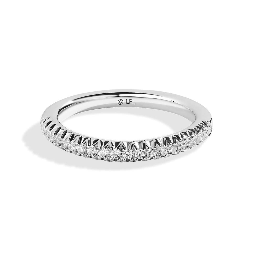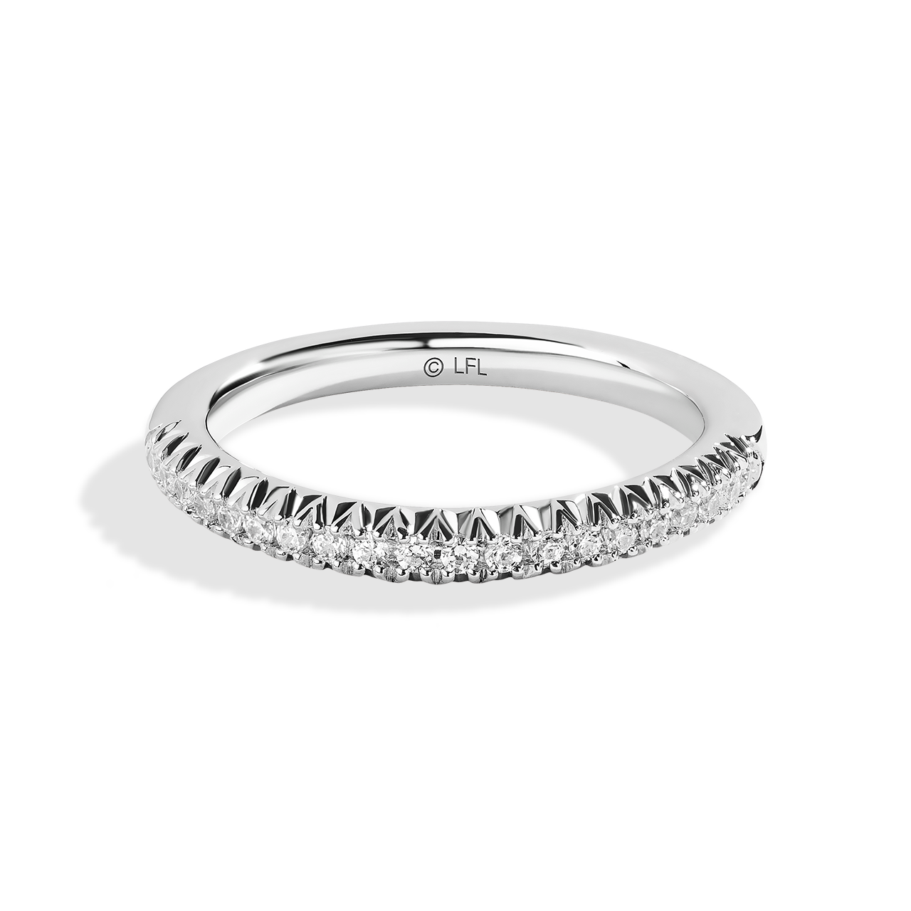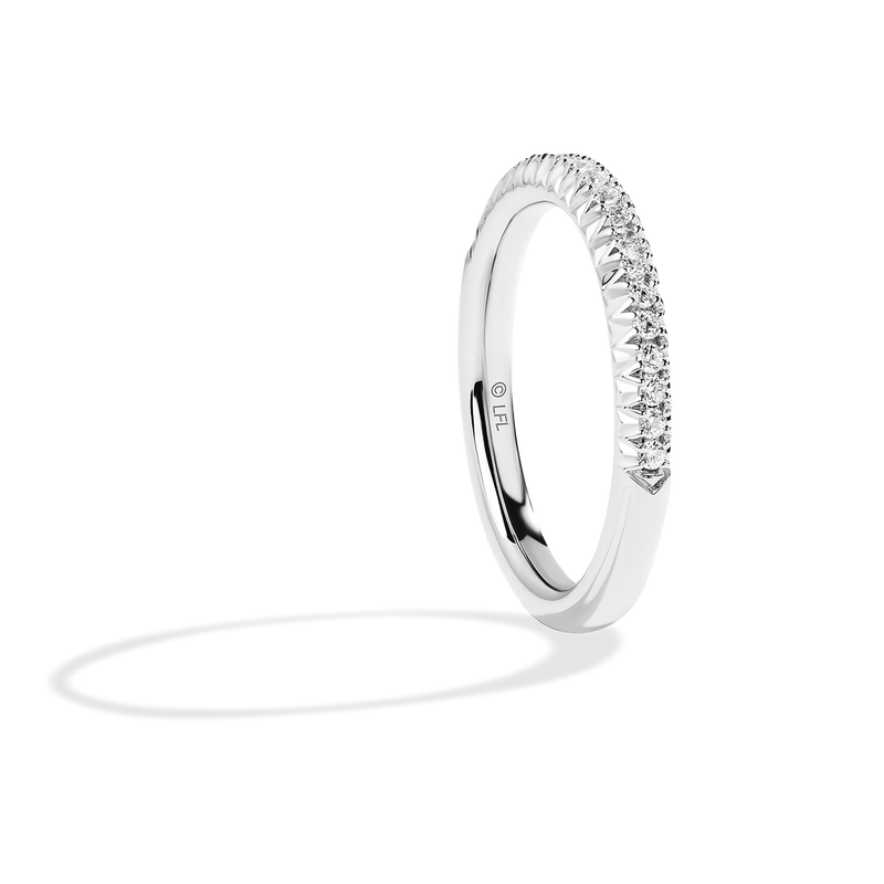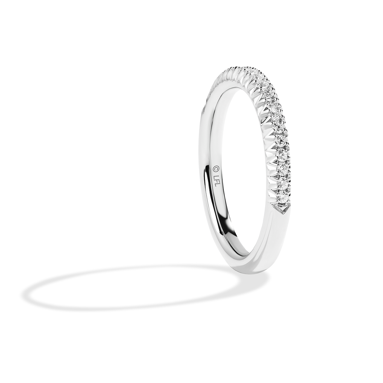 Guardians of Light women's wedding band made in 14k white gold with white diamonds.