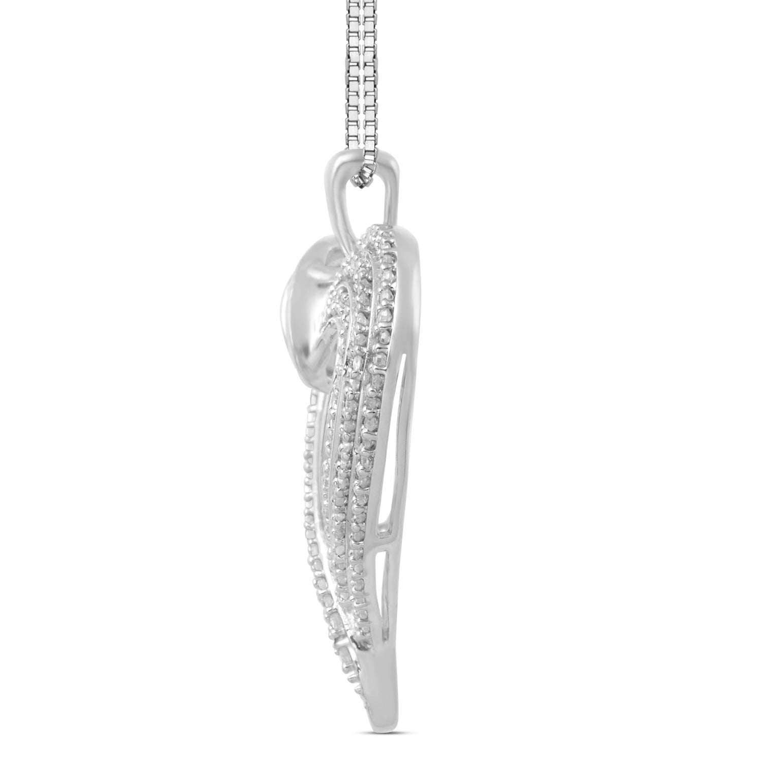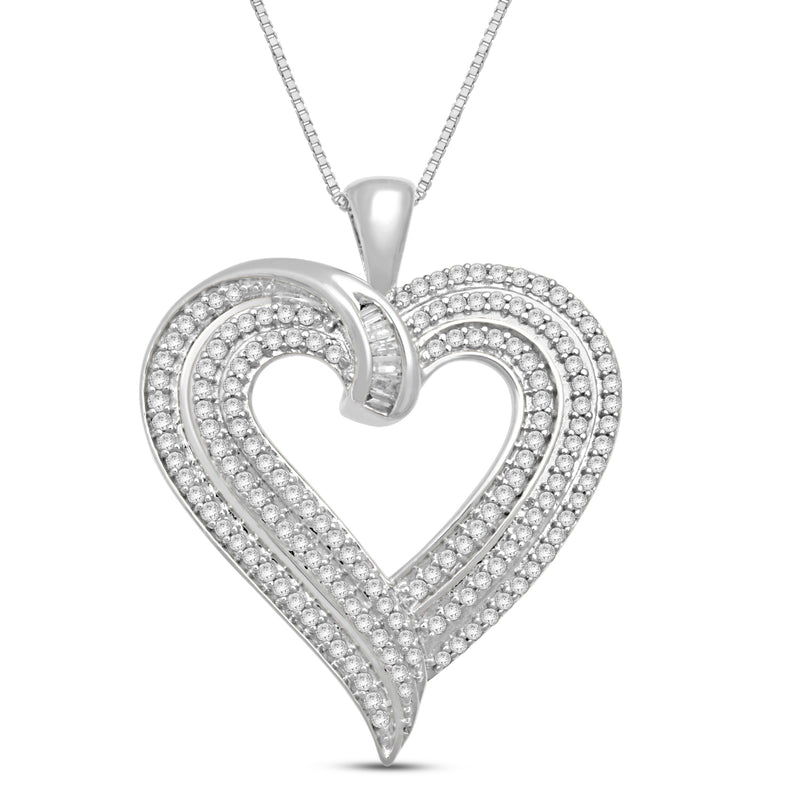 Jewelili 10K White Gold With 1/2 CTTW Baguette and Round Diamonds Heart Pendant Necklace