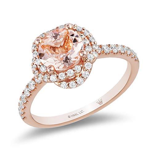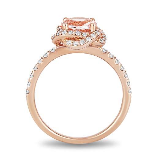 Jewelili 10K Rose Gold with Round Morganite and 3/8 CTTW Natural White Diamonds Ring