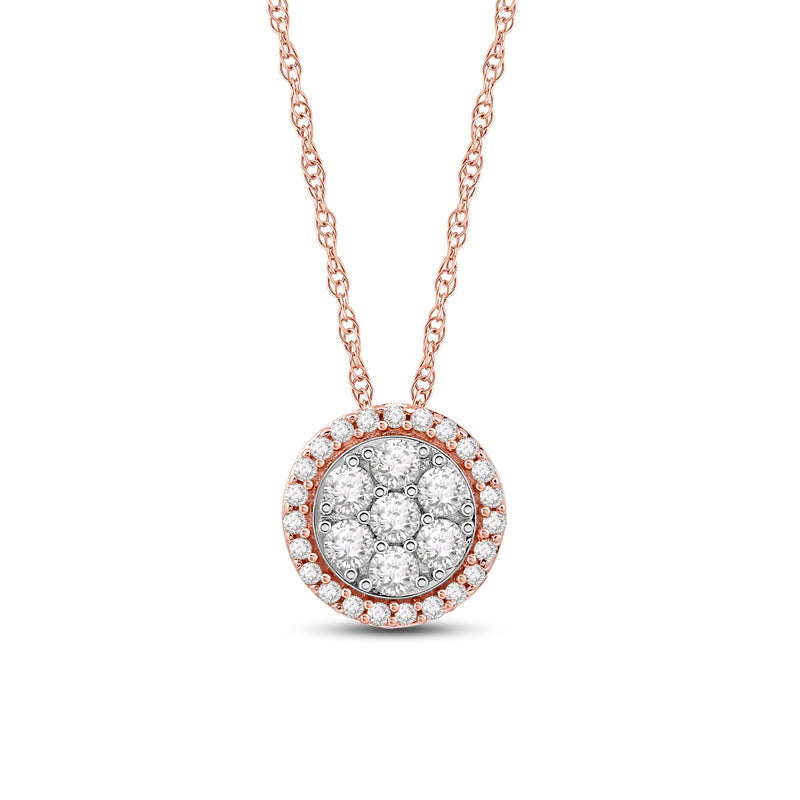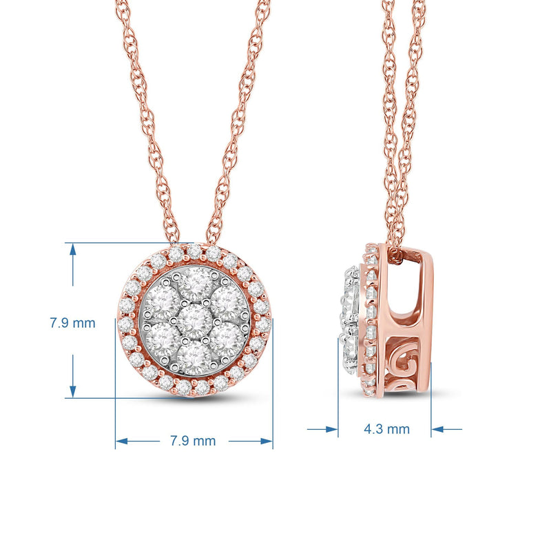 Jewelili 10K Rose Gold 1/4 Cttw Natural White Round Diamond Pendant Necklace