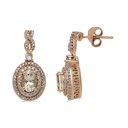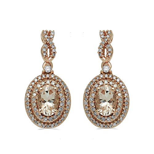 Jewelili 10K Rose Gold with Oval Shape Natural Morganite and 1/3 CTTW Natural White Round Diamonds Drop Earrings