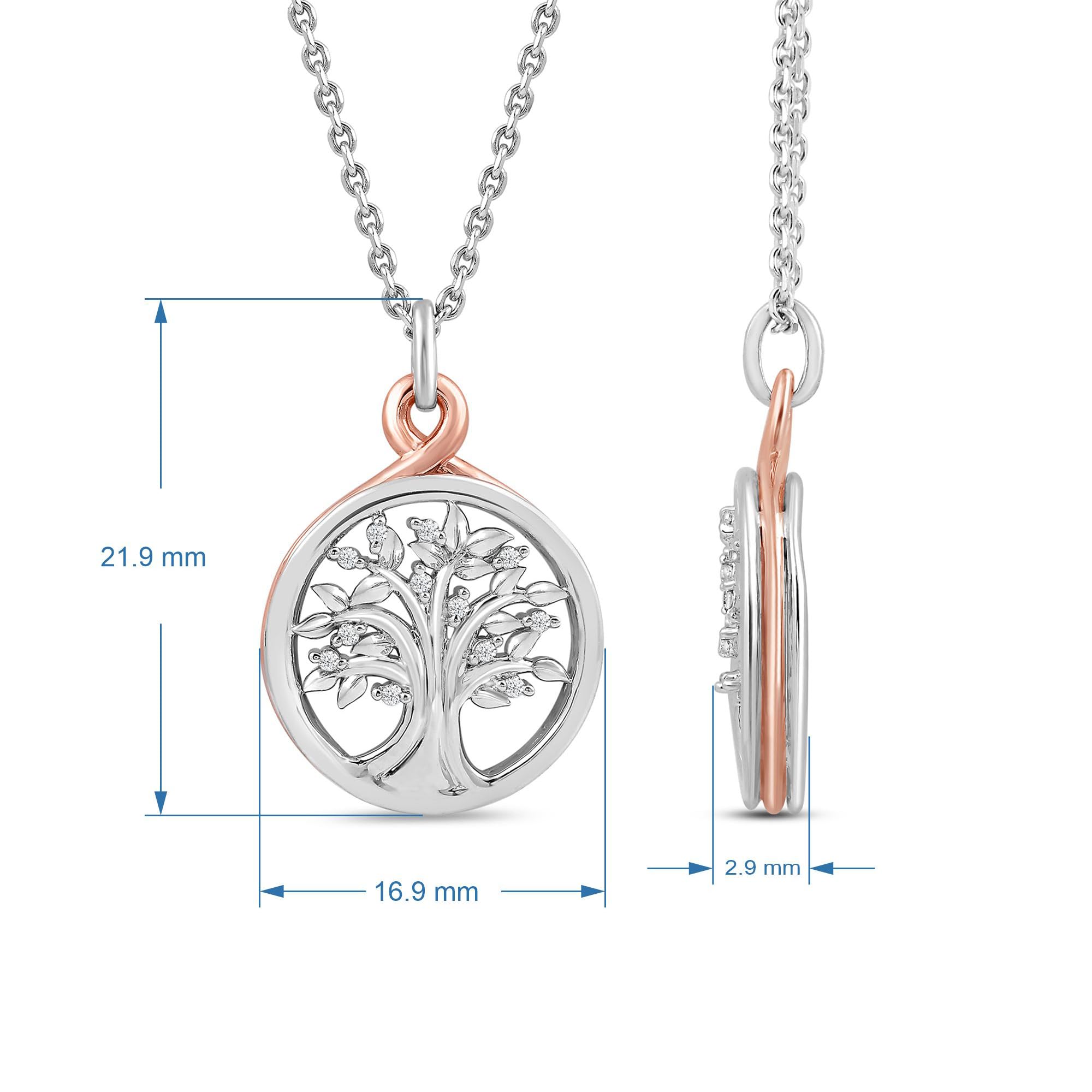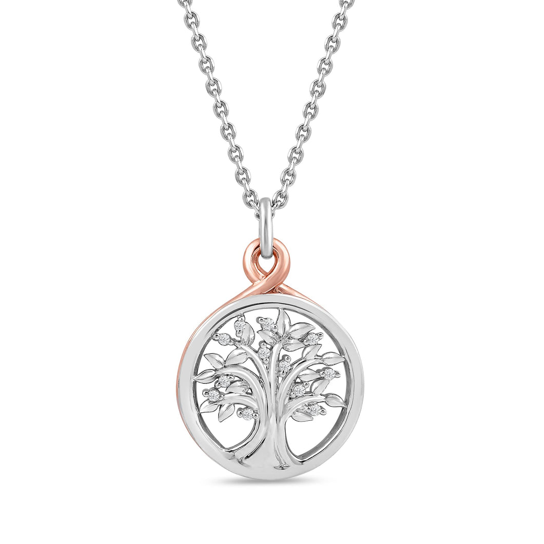 Jewelili 10K Rose Gold and Sterling Silver Natural White Round Diamond Tree of Life Pendant Necklace