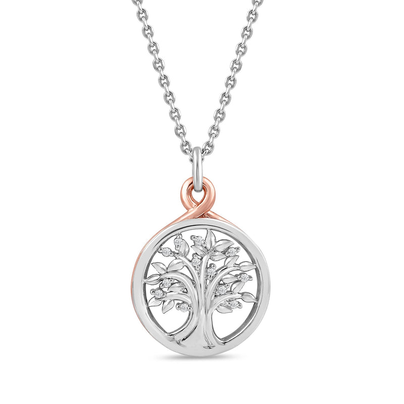 • Load image into Gallery viewer, Jewelili 10K Rose Gold and Sterling Silver Natural White Round Diamond Tree of Life Pendant Necklace