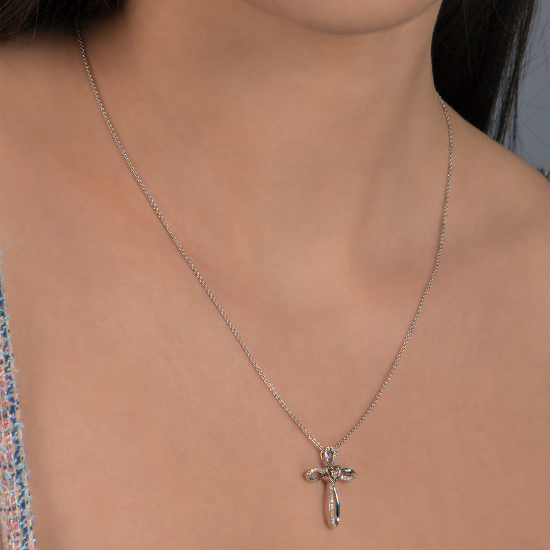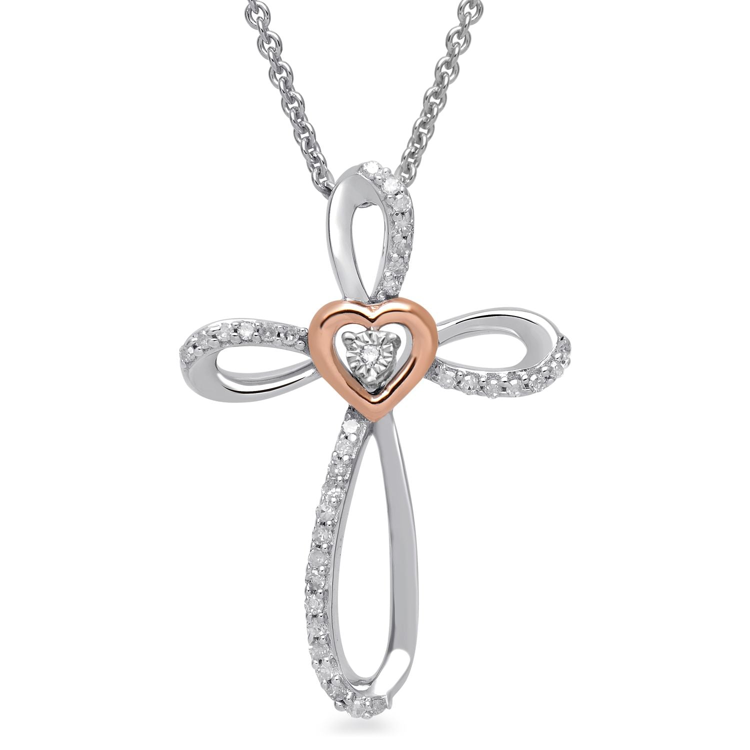 • 10K Rose Gold and Sterling Silver with 1/10 Cttw Diamonds Cross Pendant Necklace