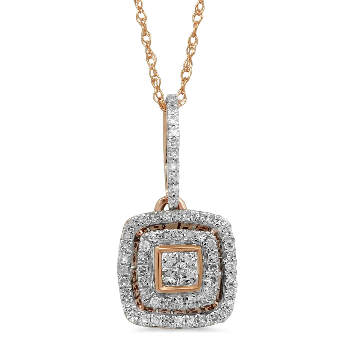Details: 10K Rose Gold With 1/2 Cttw Natural White Diamond Pendant Necklace