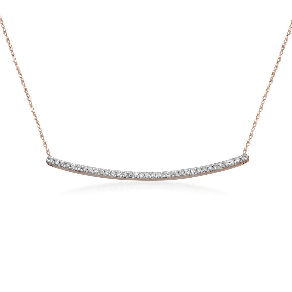 Jewelili 10K Rose Gold With 1/4 Cttw Natural White Diamonds Bar Pendant Necklace