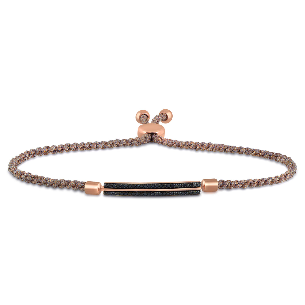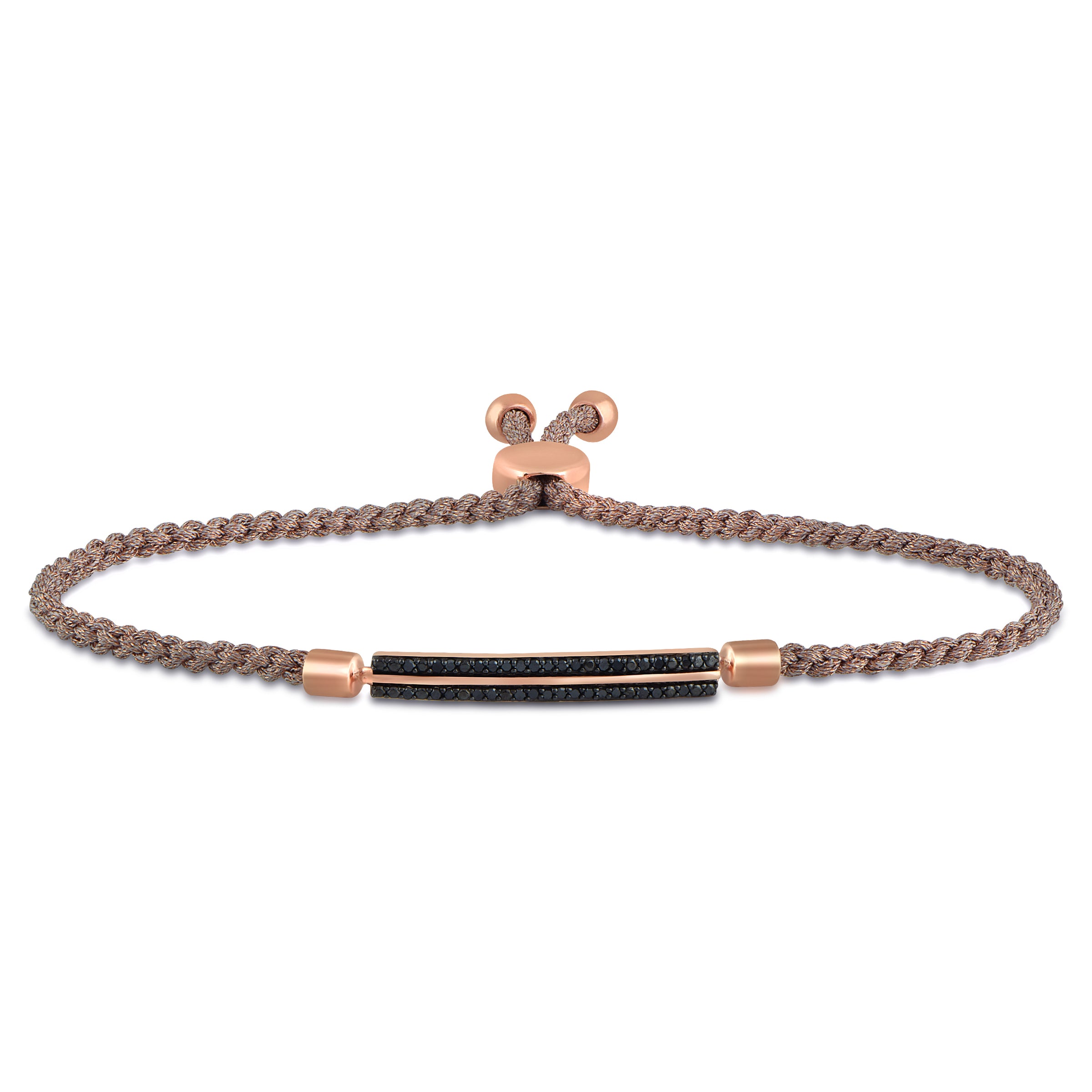 Jewelili 10K Rose Gold With 1/4 Cttw Treated Black Diamonds Bolo Bracelet