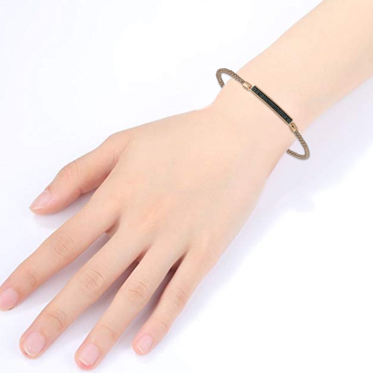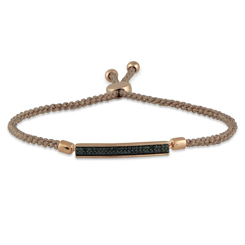 Jewelili 10K Rose Gold With 1/4 CTTW Treated Black Diamonds Bolo Bracelet, 11"