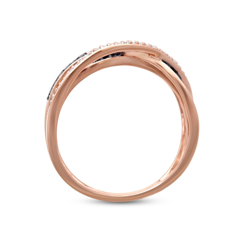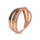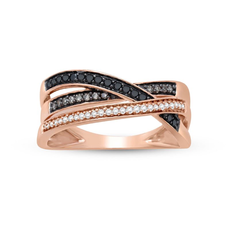 • Criss Cross Band Ring in 10k Rose Gold 1/5 Cttw Black, Champange and White Natural Diamond