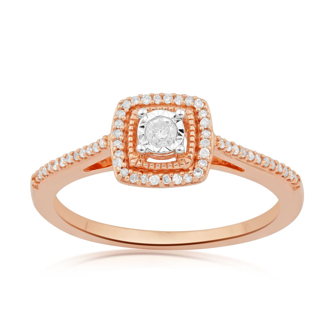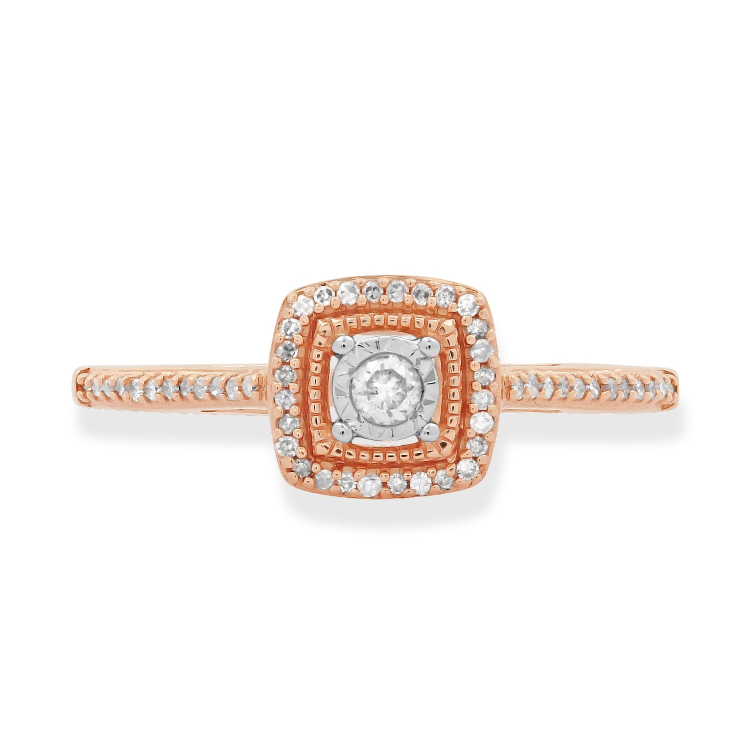 Jewelili 10K Rose Gold With 1/6 CTTW White Diamonds Ring