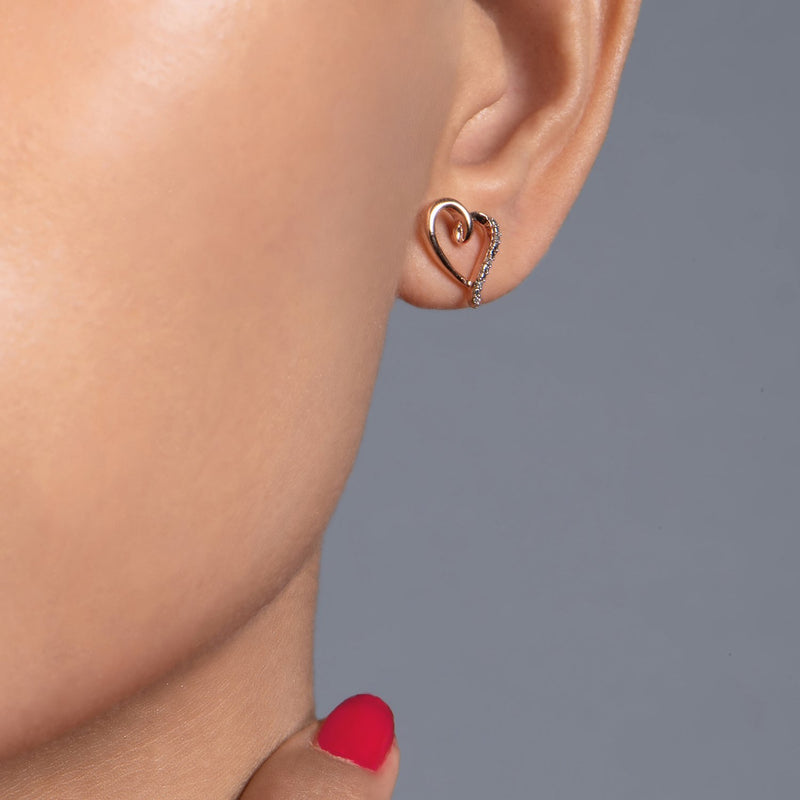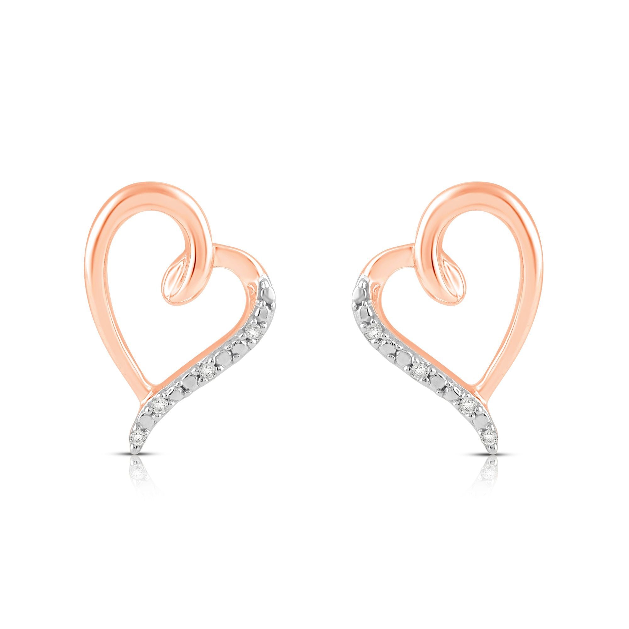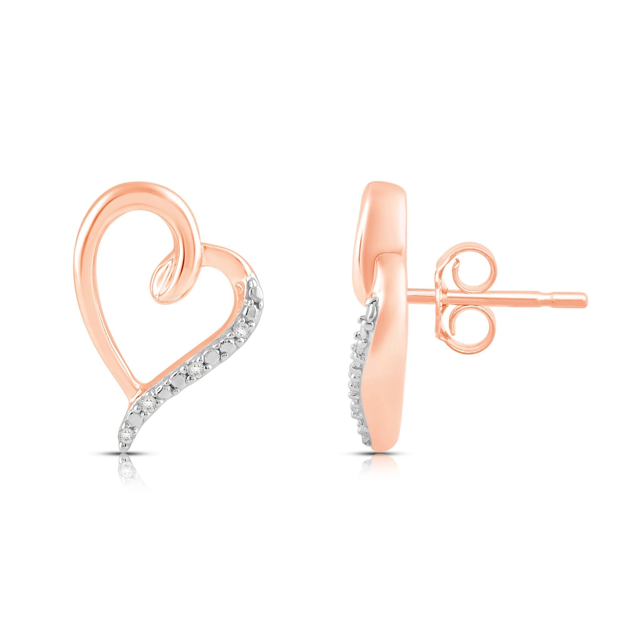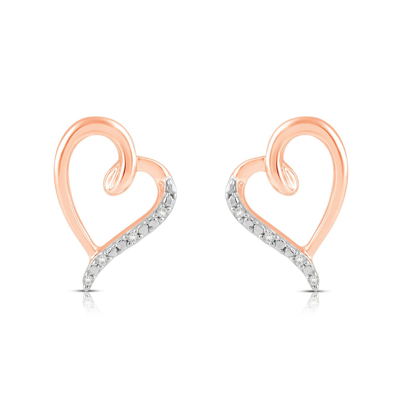 • 10K Rose Gold With Diamond Accents Heart Stud Earrings