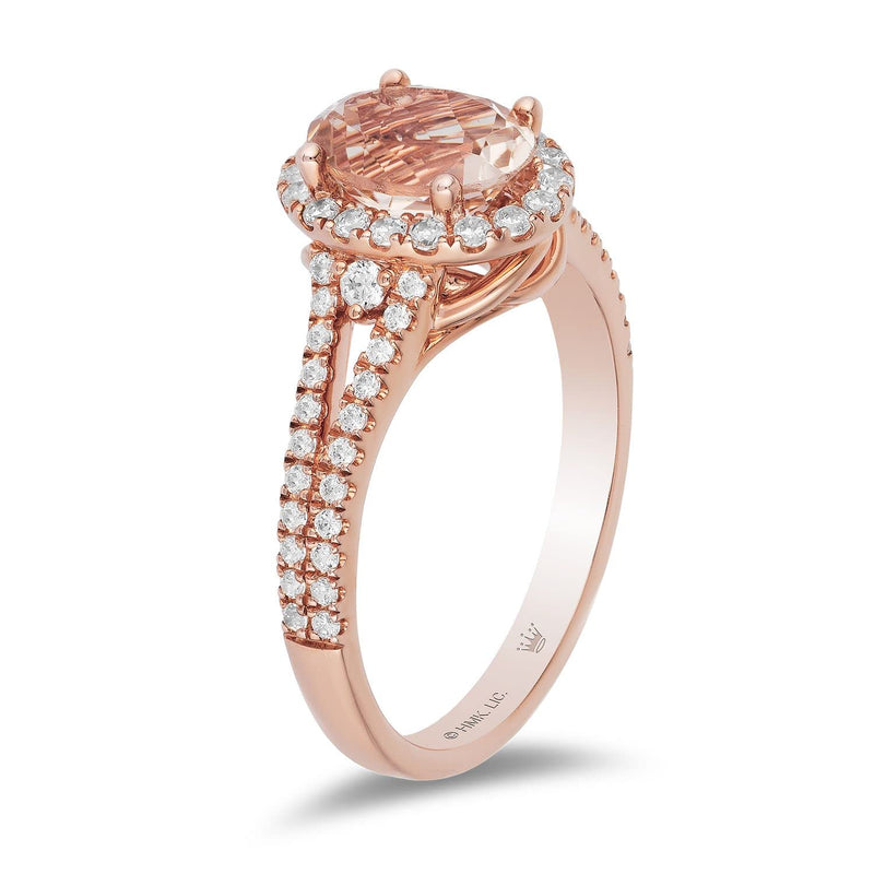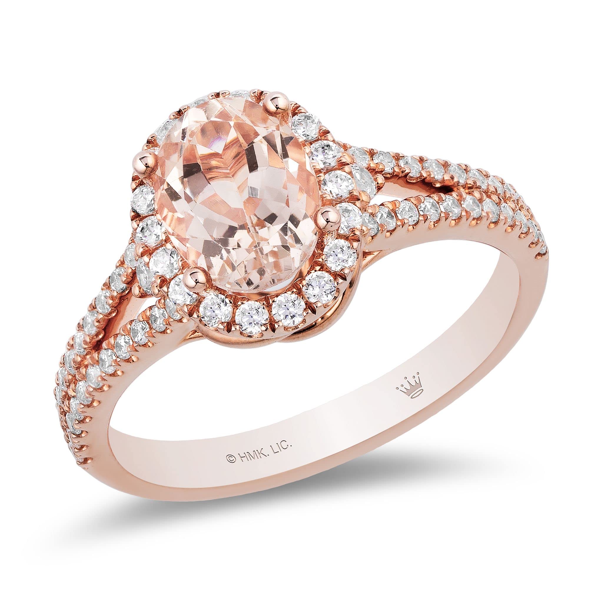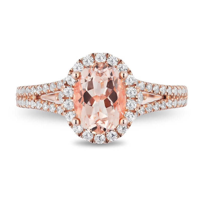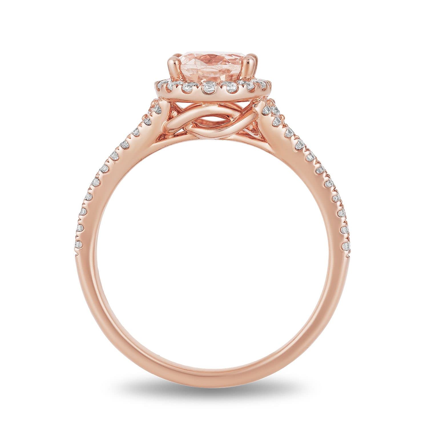 • 10K Rose Gold With Morganite and 3/8 Cttw Natural White Diamond Halo Engagement Ring