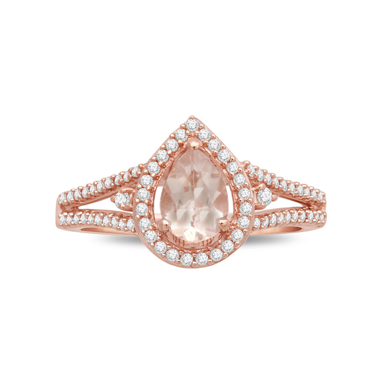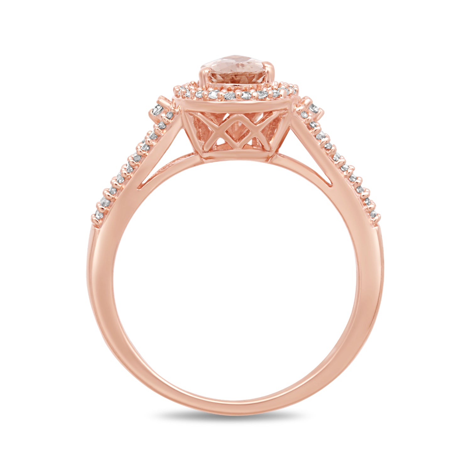 • 10K Rose Gold With Pear Shape Morganite and 1/4 Cttw Natural White Diamonds Teardrop Ring