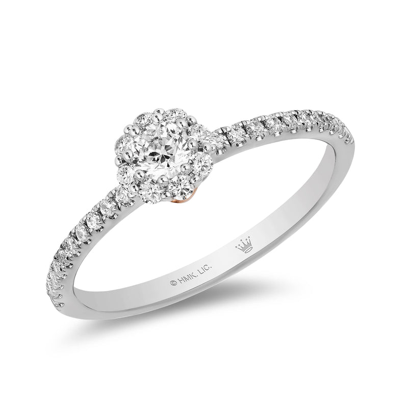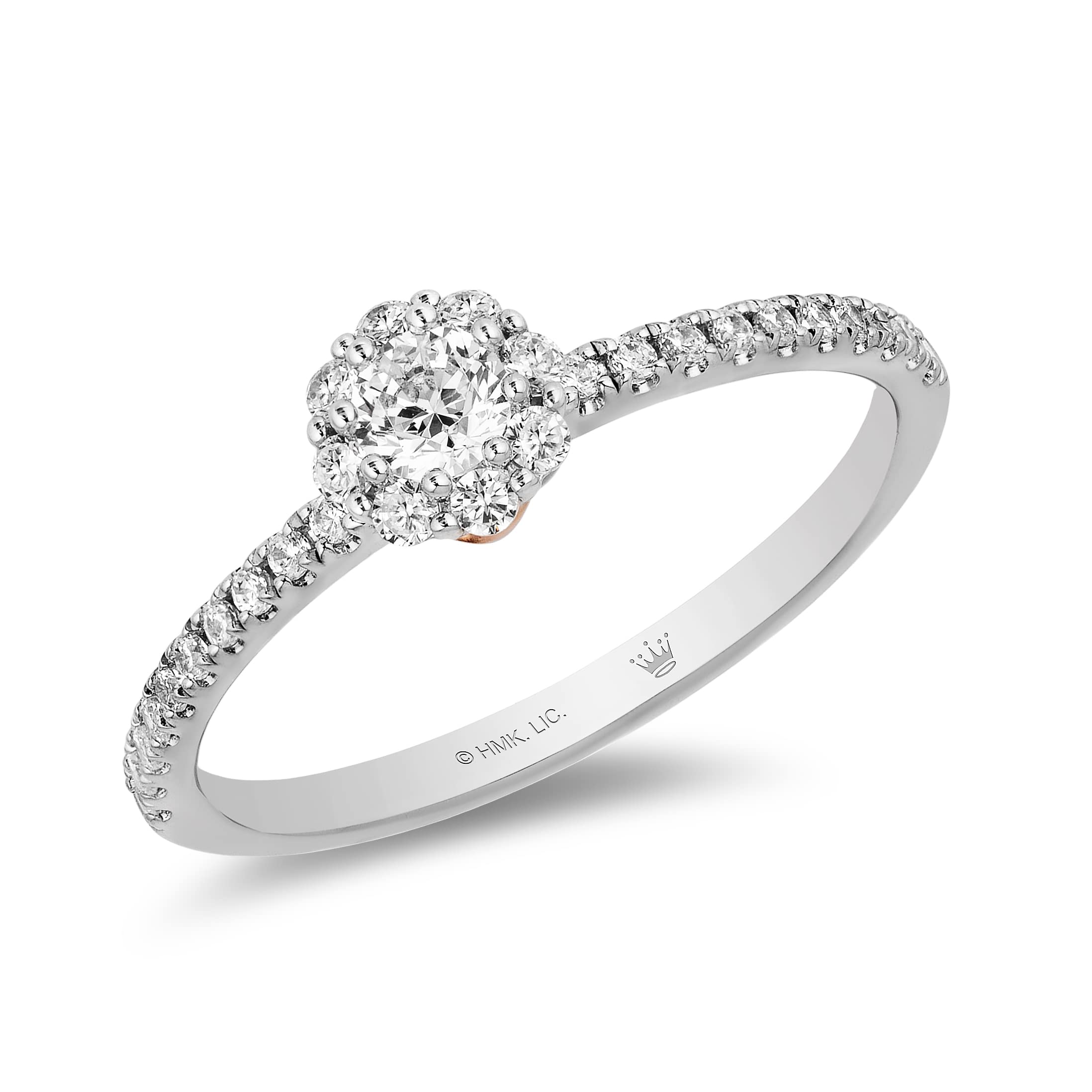 Jewelili 10K White and Pink Gold With 1/4 CTTW Natural White Diamond Engagement Ring