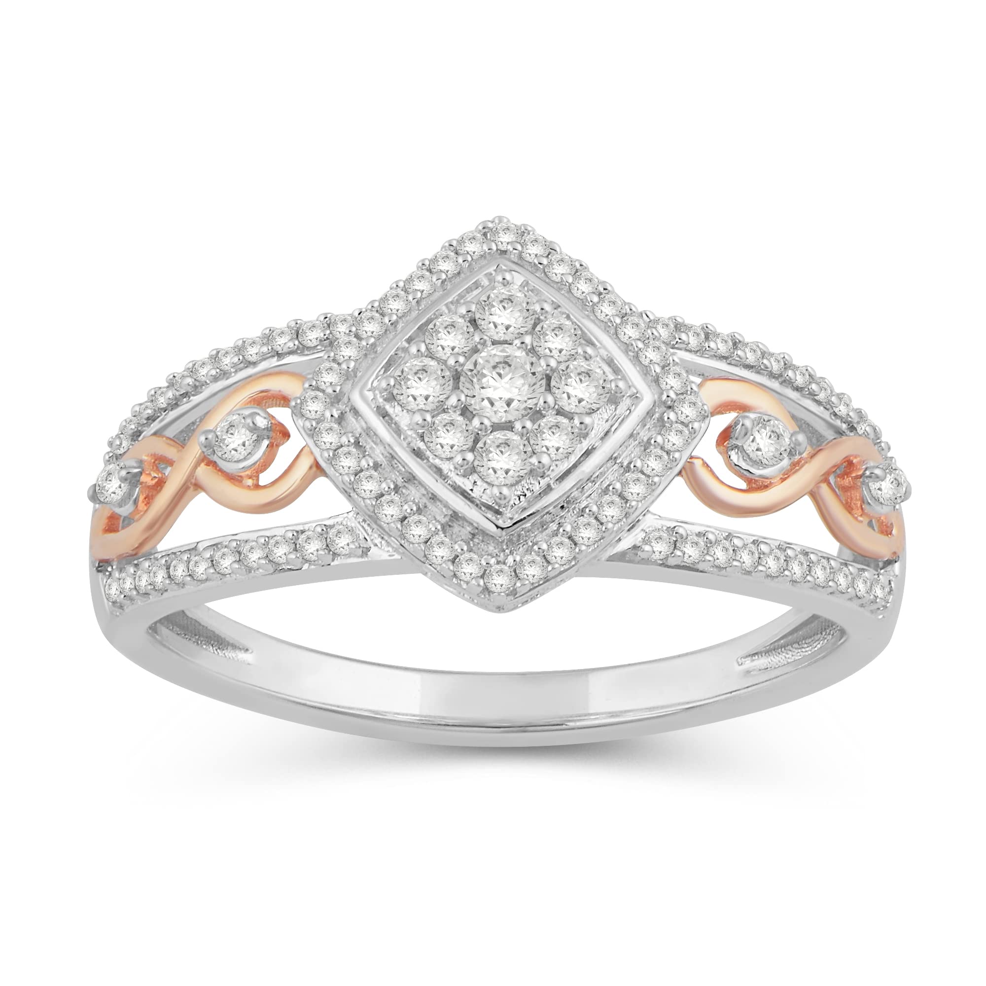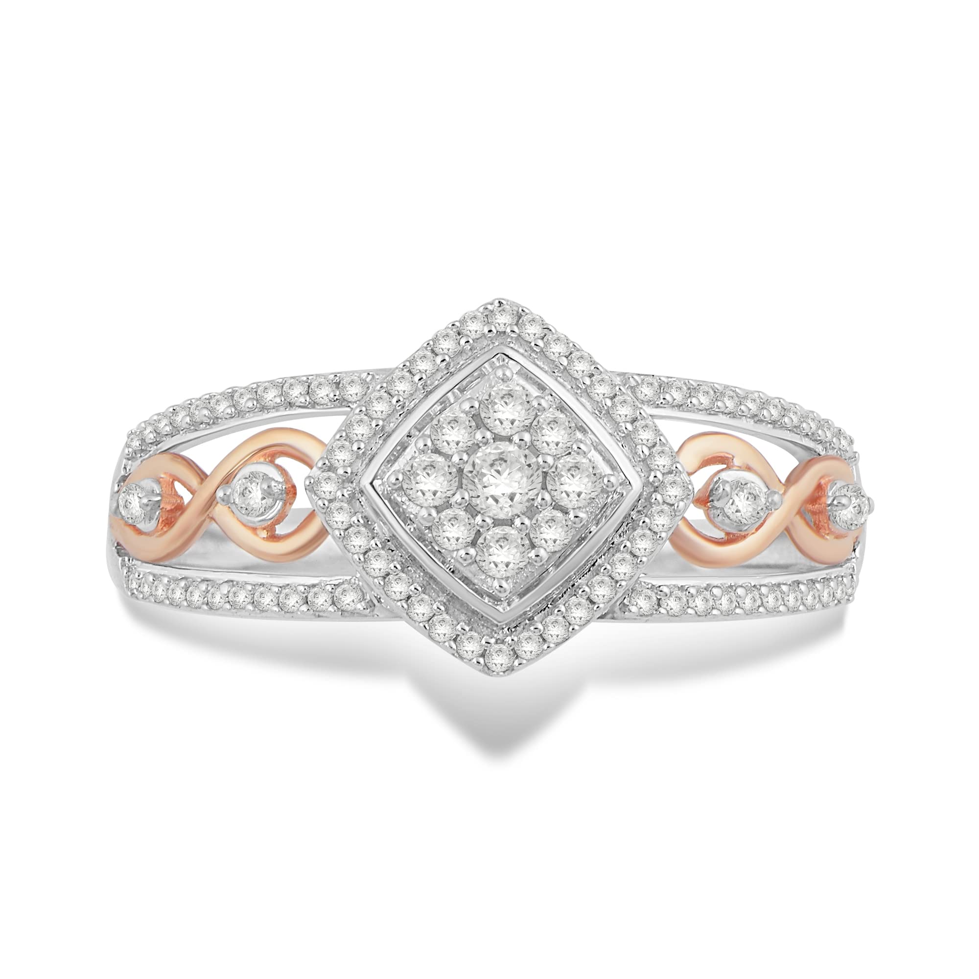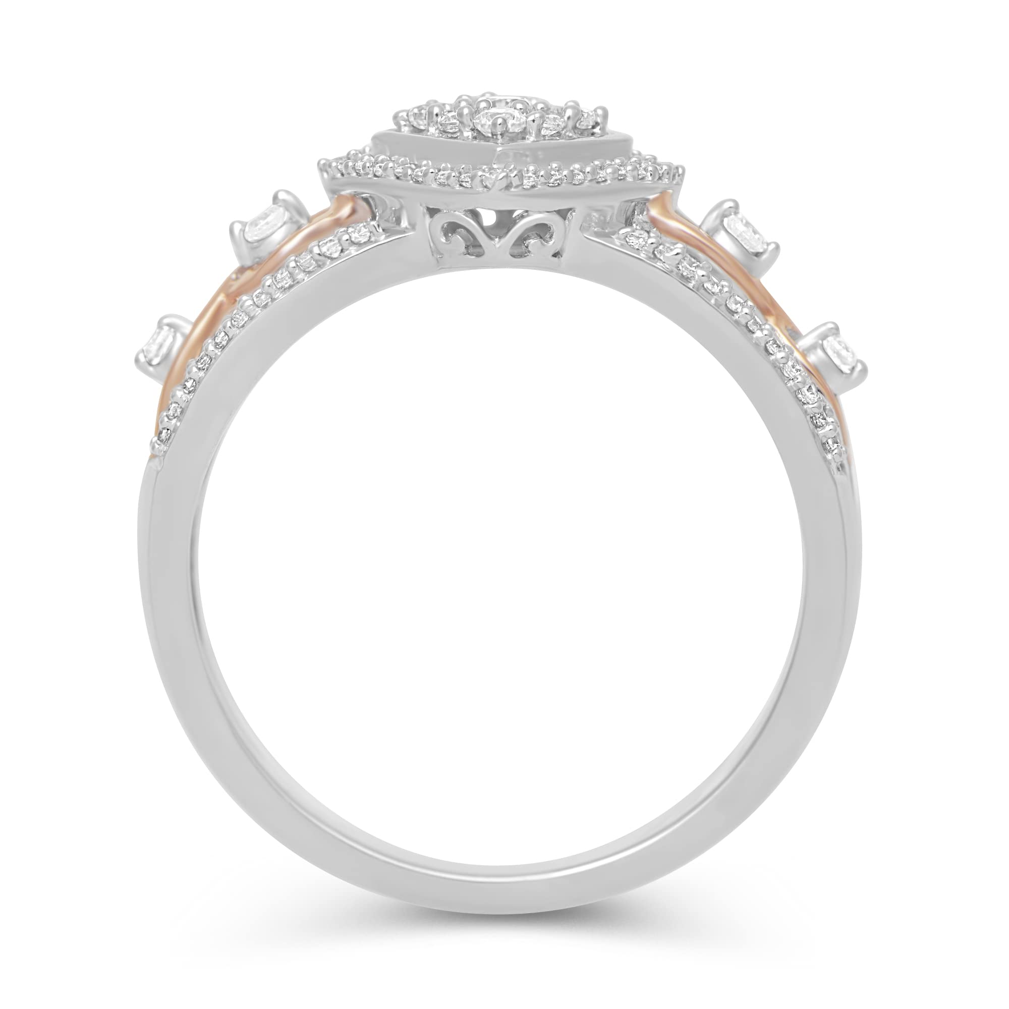 Jewelili 10K White Gold and Rose Gold With 1/3 CTTW Round Natural White Diamonds Ring