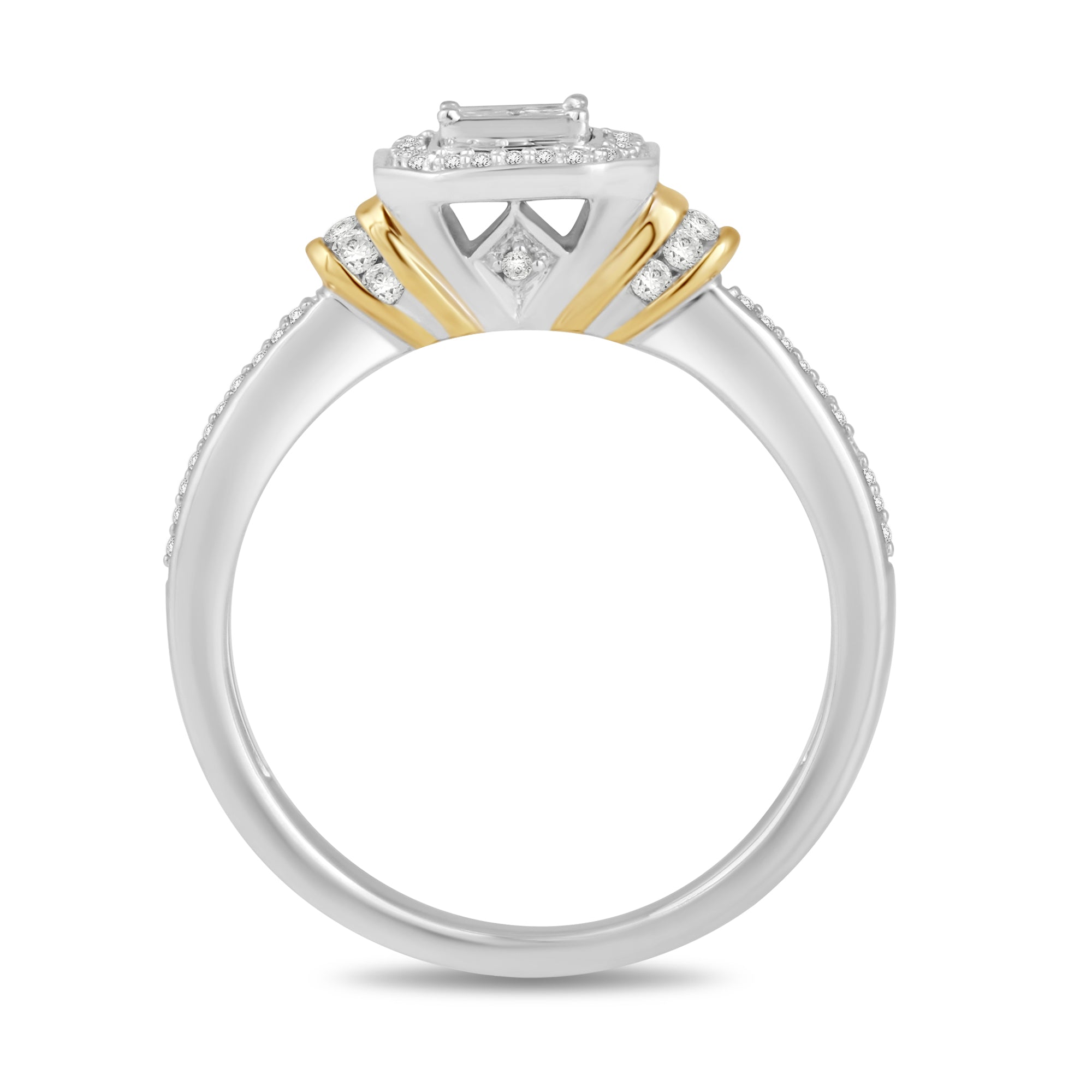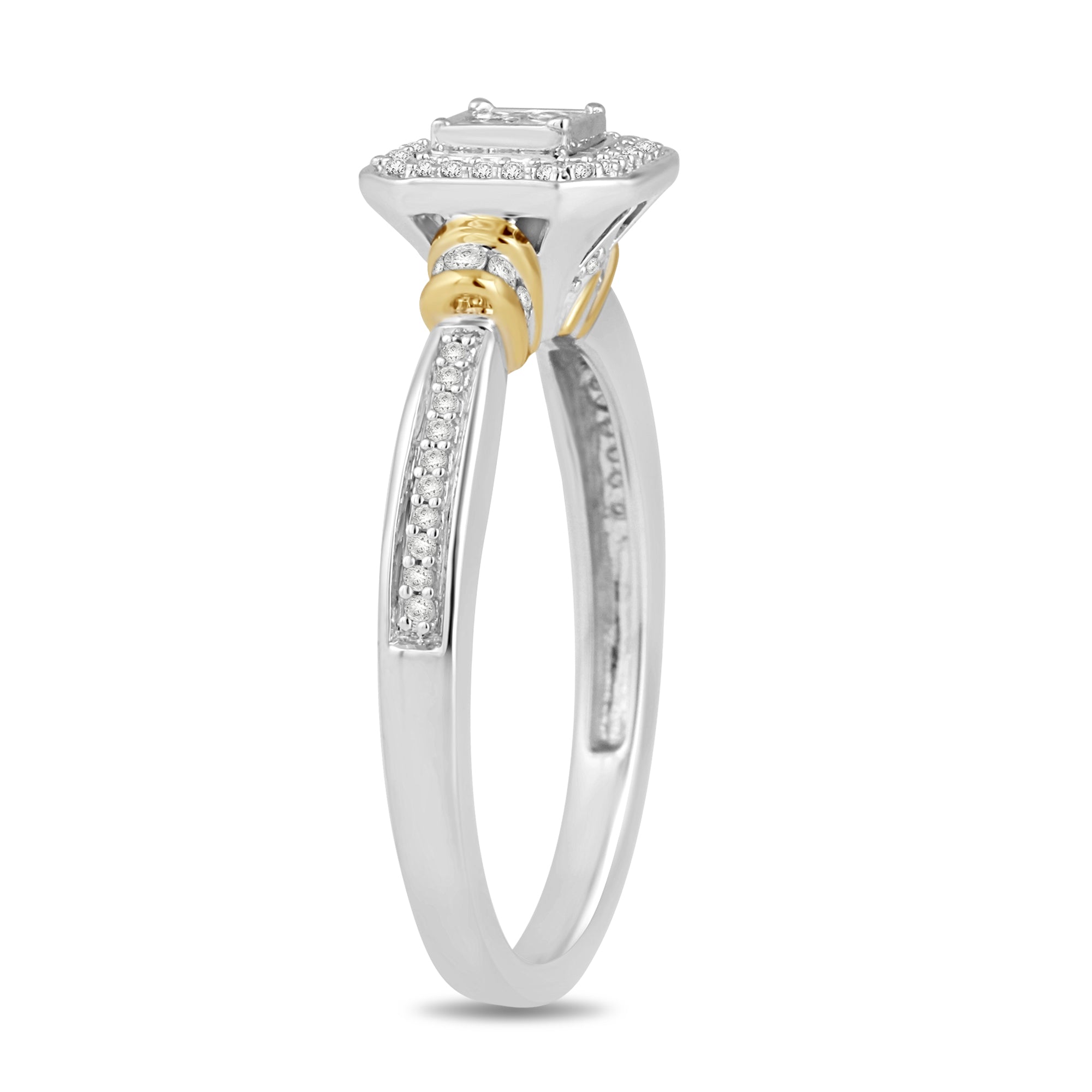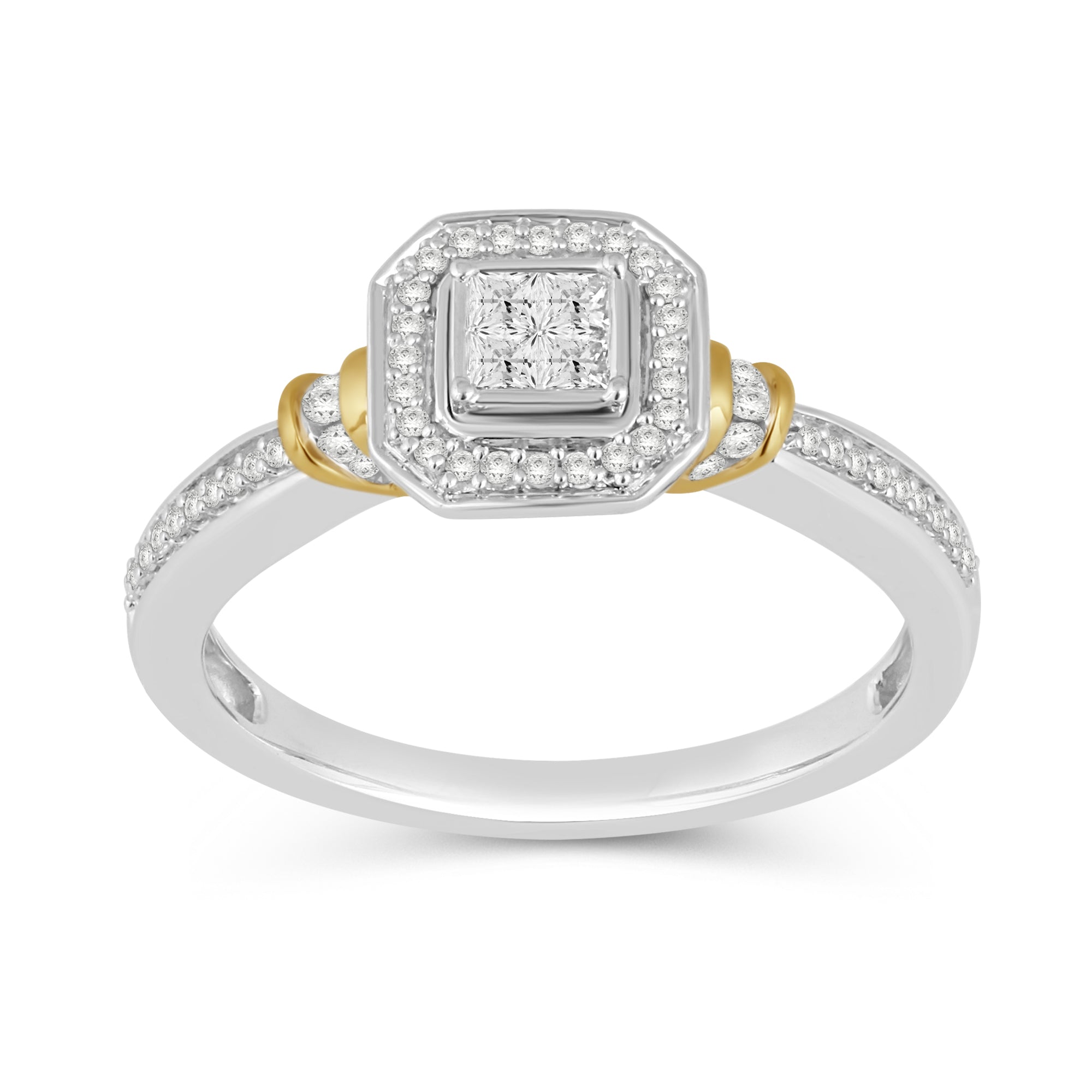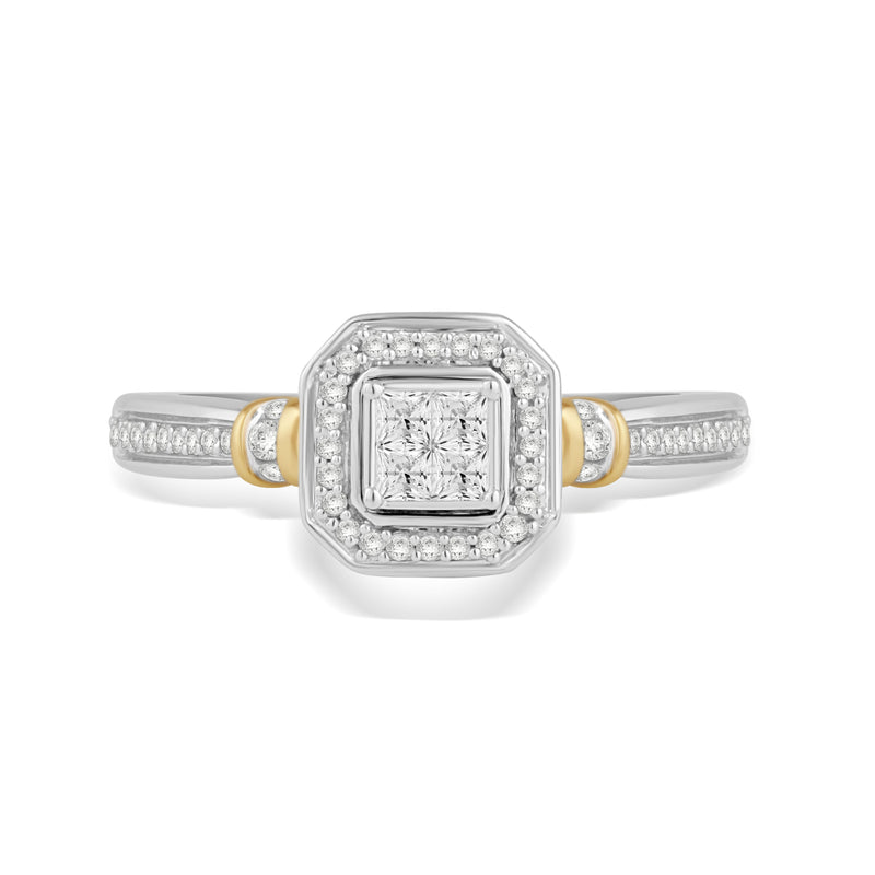 • 10K White and Yellow Gold Two Tone Ring set with 1/3cttw Princess cut and Round Natural White Diamonds.