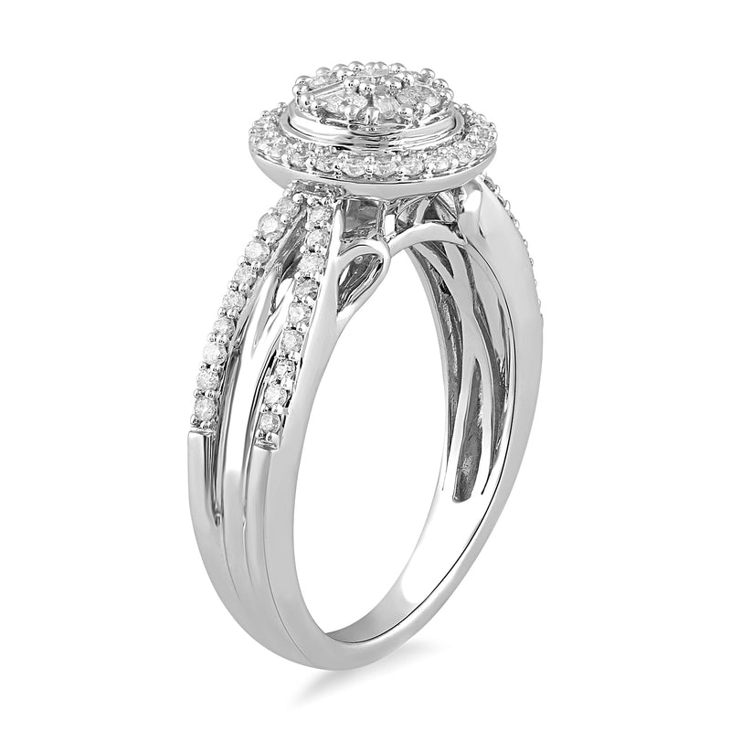 • Load image into Gallery viewer, Jewelili Engagement Ring with Baguette and Round Natural White Diamonds in 10K White Gold 1/2 CTTW View 3